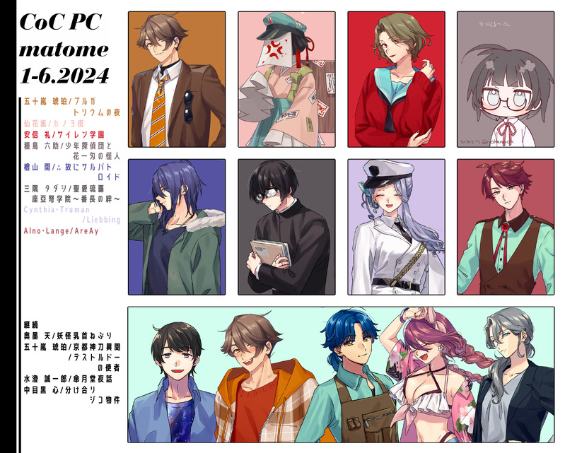 you110116☆quiet followMEMO2024前半CoC PCまとめ!継続いっぱいやったなあ~!色んな意味で楽しいセッションが多かった! Tap to full screen (size:3715x2980).Repost is prohibited Let's send reactions! freqpopularsnackothersPayment processing Replies from the creator Follow creator you care about!☆quiet follow you110116DOODLEツインレイの悲劇(ネタバレ)/NPCお借りしてます。0821(これが全てです)/パスは鯖名。 you110116SPOILERツインレイの悲劇(ネタバレ)/相手のPC・NPCお借りしてます。ほぼらくがき、自PCかわい~てなってるだけ/パス鯖名 3 you110116MEMOうちの子(探索者)髪と眼の色組み合わせまとめテンプレお借りしました!思ったよりはばらけてくれてよかった you110116MEMO2024年後半PCまとめ(今更過ぎる)/あらゆる意味でいろいろやったな… you110116SPOILERいわひら(ネタバレ)/醍醐味ってこれだろ・同卓PCお借りしてます・パス鯖名 you110116SPOILERイザナミの棺(ネタバレ)/HO2PC借りてます・温度差激しくて風邪ひくかも/パスは鯖名 6 recommended works iris_ulvDONE #1d100で決めた赤面度でリプ来た探索者を描く72赤面の光明盧黒くんに下の名前呼ばれた時の光明ですね 3 tori_play_gameDOODLE #1d100で決めた赤面度でリプ来た探索者を描くトウマ、雪華ちゃん、鳩羽さん、鶴見さん、イガシュでした!指名ありがとうございました✨ よつばDOODLE #1d100で決めた赤面度でリプ来た探索者を描く低い順からシャルルくん、架純さん、雁金くん、遙くんでした!ありがとうございました! you110116DOODLE #1d100で決めた赤面度でリプ来た探索者を描く 微調整・まとめ/4枚目はシチュの答え※アイラスのネタバレ有ります/みんな付き合ってくれてありがとう!楽しかった~~~~~~~~。 4 karinosukeDOODLE #1d100で決めた赤面度でリプ来た探索者を描く#赤面する子は可愛いテンプレートをお借りしました zhiqin57715870DOODLE青坊主猛火爆炒夜叉 4 ryuusea_DOODLE🔞SW / 🍭 Durham date went straight to dessertPW: 18+ yes/no? 色上優PAST過去の同人(銀魂)コピー本表紙のみとなります中身は完全なアナログなので 2 すみ🐕DONEリクエスト頂きました「奇妙な共闘」のイラストです動画まだ見てない方もいるかもしれないので、ワンクッションにしましたリクありがとうございました!