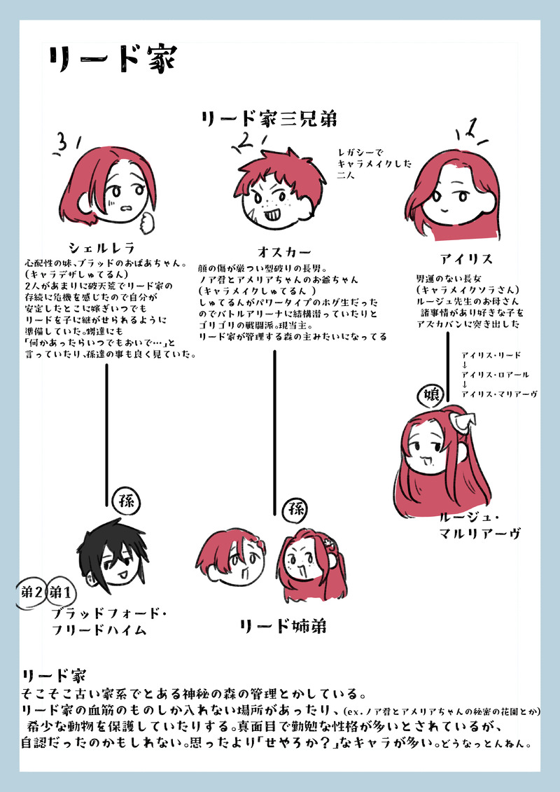 hk_36_95☆quiet followDOODLEブラッドも来たのでリード家解説です。ブラッドがCSで「曾祖母がリード家」となってましたが、「祖母がリード家」に変更になります。 Tap to full screen (size:2894x4093).Repost is prohibited Let's send reactions! freqpopularsnackothersPayment processing Replies from the creator Follow creator you care about!☆quiet follow hk_36_95DOODLE🎃練り hk_36_95DOODLE夏休みの準備ユルギス君のところへ遊びに行くことになったアディス 2 hk_36_95MEMOプルレジ 支配人さんと剛鬼あんこと運命の出会いを果たした話プルレジ本に乗らなかった没ネタです。「」剛鬼 『』支配人 (引き継ぐ前) 390 hk_36_95MEMO学生時のレスター先生とヤナギ先生のやりとり。「」レスター 『』ヤナギ 「」なし モブ女子生徒 629 hk_36_95MEMO書きかけですレフ先生とレスター先生が学生だった頃の話ヤナギ先生も添えて「」レフ 『』レスター 「」なし モブ ヤナギ 1281 hk_36_95MEMOロードリックとブラッドの空気感の話赤月寮の前、ポージーを待っているブラッドと、その引き渡しの立ち合いになってしまったロードリック君「」ロードリック 『』ブラッド 「」なし ポージー 521