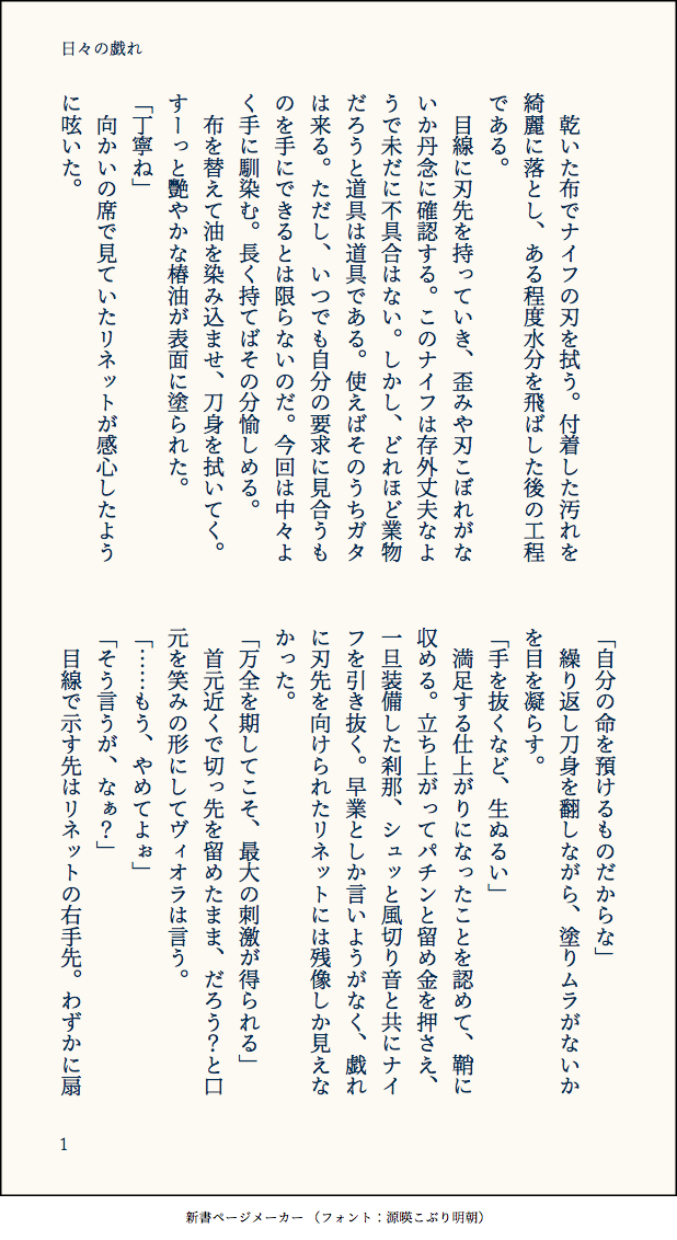 瑞久倉庫☆quiet followDONE『日々の戯れ』ヴィオラとリネットの話。武器のお手入れをするヴィオラ姐さんが見たかった。 #オクトラ大陸の覇者 ##文章もの show all(+1 images) Tap to full screen (size:618x1132).Repost is prohibited Let's send reactions! freqpopularsnackothersPayment processing Replies from the creator Follow creator you care about!☆quiet follow 瑞久倉庫PAST粘土ミロードの写真まとめです。主に季節の花々と一緒に撮ったものになります。時々増える予定。桜&造花桜(10枚)→チューリップやネモフィラ等(6枚)→アジサイ(1枚)→蓮(6枚)→ひまわり(4枚)→彼岸花(2枚)2025/9/27更新 29 瑞久倉庫PASTミロードの秘奥&必殺上限開放記念天降る光、綺麗だなと思いながらいつも使ってます2025/6/19(x投稿) 瑞久倉庫PAST診断メーカーより、お題『停電の夜』で140字SS※ミロード→ステッドっぽい話※2枚目は診断結果2025/6/16(x投稿) 2 瑞久倉庫PAST診断メーカーより、お題『ただいま妄想中』で140字SS。※ステッドとミロードで現パロ※ステ目線のほのぼの※2枚目は診断結果2025/6/14(x投稿) 2 瑞久倉庫PASTCV繋がりで衣装交換!搦め手多そうな剣士と物攻高そうな神官になりました。2025/5/19(x投稿) 2 瑞久倉庫PAST笑顔が描きたくて一枚目:ミロード(頬が緩むるのが抑えきれない)の笑み二枚目:ステッド(からかい半分、気の緩み半分)の笑み2025/5/17(x投稿) 2 related works 瑞久倉庫DONE『煙と共に』ミロードとステッドで、煙草の話。※文章ものです※現パロ※つきあってるし、やることやっている関係※直接的な描写はありませんが、↑の匂わせがひどい2024/12/11(X投稿) 7 祠崎 蒼DONE浅野チーム年末年始企画2025にお送りしようとして間に合わなくて後から完成させました。送らせていただいた途中のものとだいぶ違う仕上がりになってしまった!あれ!2025年もよろしくお願い致します…!! himDONEオクトラBBアルバムvol.2発売記念 兼 今年の芸術の覇者応募作品です🎻🎸2.5周年配信ライブの「富を授けし者」が大好きなのでバルジェロファミリーで描きました!余談 設定とか https://fusetter.com/tw/xJgvIZ0r kate1st_bareSPOILER名声3章までのネタバレあり。注意。 kuro0rtdteraDONEオクトラ大陸の覇者長めのメンテの時に描いた絵その2。アイラの手紙はメモリアルスカーフお揃い発言と言いいちいち可愛い。(ので巻き合いっこしてる所を想像して描きました。)好き。 2 kuro0rtdteraDONEオクトラ大陸の覇者のヴィオラさん。キャラクターも好みで何処でも連れて行けるスキルなのが嬉しい。描けば当たる!して無事来てもらえて良かった。 Chobi115chuPROGRESS怪盗エリカさま の進歩です! 2 kuro0rtdteraDONEオクトラ大陸の覇者ピアちゃん。はじめに指輪に導かれて来てくれたので自分にとって大好きな主人公。ストーリーや闘技場にと行けるとこまで一緒に行きたいです。明るく可愛くてとても好き。 2 kuro0rtdteraDONEオクトラ大陸の覇者で先生がピックアップ中にテレーズが来てしまって被りだしタロット名声だったから来ただろ!って喜びかけた分落ち込んでしまった時にテレーズをじっくり見てたら可愛いなーお世話になってるし絵描きたいなーとなり描いた絵。笑顔が可愛いので差分を作ったり、ドットと絵で衣装違う所あるのでその差分と色収差かけたやつとか差分まみれです。同じような絵が続きますすみません。 6 recommended works poppogameloveDONEオクトパストラベラー一周年おめでとうございます!!というわけでイラストと後ろからの図解的なものと線画をば…久々にコピック使った… 3 くじ太郎DONEキミは本当にすごい子だよアーフェンシナリオクリア記念いやもう私はまだ若い彼が心配で心配で でも彼は予想よりずっとかっこよかった… くじ太郎DOODLE「俺は悪くねえ選択だとおもうぜ」オクトラ テリオンとアーフェンとオフィーリア 瑞久倉庫DONE『焚き火と子守唄』リネットとミロードの話。リネットのトラストネタバレ有り。2人で焚き火を囲んで欲しかった&子守唄を歌わせたかったという思いから出来ました。CPの意図はありませんが、そう見えたら申し訳ない 4 Ajax_super_V8DOODLE #大陸の覇者アート 「笑ってないで!一緒にまじないを解く方法を考えてくれ!」「はて…どうしたものでございましょうか」弊旅団の旅の日数、222日を記念して りのせDONE今日の一枚デフォルメ版権絵!オクトパストラベラー・オフィーリア。枠に入れるの楽しかったけど枠が黒いせいで遺影に見えなくもな… りのせDONE今日の版権絵!オクトパストラベラーよりプリムロゼ。実はこの大き目の方のコラージュ素材、プリムロゼ描く時に使おう~と思ってピンポイントで買った素材だったりします…が右上のって薔薇なんだろうか りのせDONE今日の版権絵!オクトパストラベラーよりオフィーリア。消しゴムはんこと日付の下マステ縛りでシール系の素材無しでやってみました~なんてお金のかかってないコラージュ ナユタDOODLE🍑ガブッ