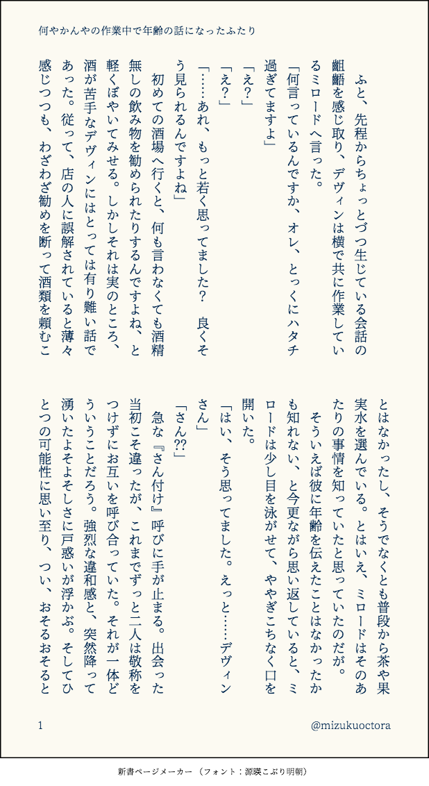 瑞久倉庫☆quiet followDONE『何やかんやの作業中で年齢の話になったふたり』デヴィンとミロードがただ喋っているだけネタ的なものですかなりまえにTwitterに放流したもの2023/1/13(Twitter)2023/5/20(格納) ##文章もの #オクトラ大陸の覇者 show all(+1 images) Tap to full screen (size:618x1132).Repost is prohibited Let's send reactions! freqpopularsnackothersPayment processing Replies from the creator Follow creator you care about!☆quiet follow 瑞久倉庫PAST粘土ミロードの写真まとめです。主に季節の花々と一緒に撮ったものになります。時々増える予定。桜&造花桜(10枚)→チューリップやネモフィラ等(6枚)→アジサイ(1枚)→蓮(6枚)→ひまわり(4枚)→彼岸花(2枚)2025/9/27更新 29 瑞久倉庫PASTミロードの秘奥&必殺上限開放記念天降る光、綺麗だなと思いながらいつも使ってます2025/6/19(x投稿) 瑞久倉庫PAST診断メーカーより、お題『停電の夜』で140字SS※ミロード→ステッドっぽい話※2枚目は診断結果2025/6/16(x投稿) 2 瑞久倉庫PAST診断メーカーより、お題『ただいま妄想中』で140字SS。※ステッドとミロードで現パロ※ステ目線のほのぼの※2枚目は診断結果2025/6/14(x投稿) 2 瑞久倉庫PASTCV繋がりで衣装交換!搦め手多そうな剣士と物攻高そうな神官になりました。2025/5/19(x投稿) 2 瑞久倉庫PAST笑顔が描きたくて一枚目:ミロード(頬が緩むるのが抑えきれない)の笑み二枚目:ステッド(からかい半分、気の緩み半分)の笑み2025/5/17(x投稿) 2 related works ちゃづDONE描いたやつその1※茨あん、ジュンあん 17 わたさくDOODLE ちゃづDONE描いたやつその1※茨あん、ジュンあん 17 きくちゃんDOODLEサタン様犬好きかと思いきやロクサーンみたいなパターンもあるのでやっぱ人外思考なのかな~ nnnnnnoodderaDONE【腐向け】チャバが酔ってハ崎さんに甘えてる漫画。ハ崎さんがトイレに行くのを我慢していたりする。 4 ココノカSPOILER幻覚なので全くネタバレではないけど1072話の発言ネタ べこDOODLEピンク色のバレンタインなヨウグズ🍫 2watoyoDOODLE【朝のボールペン落書き】【日楠♀】【先天性女体化】日高先輩×男装後輩サキュバス家系楠ちゃん。海編。本当に気にしてるのは。 きくちゃんDOODLEサタン様犬好きかと思いきやロクサーンみたいなパターンもあるのでやっぱ人外思考なのかな~ recommended works poppogameloveMAIKINGリブラックとヴェルナーの下書き日誌のせいでちょっと沼に埋まったので・・・ここからもっと顔とかバランスとか弄ってからペン入れかなぁと おいもごろごろDOODLE圧倒的光の者!!眩しい!!可愛い!!癒し!!浄化される!!固定主人公はオフィーリアちゃんにしましたー。神官とか教会とか騎士とかの聖属性にホイホイされてしまうのです。ずっと真っすぐさを貫いて…!芯の強い主人公でした…!これからも多くの人を救うのでしょうよ!PT皆の結婚式は任せた!!皆、教会で式を挙げるんだぞ!!テーマ曲が綺麗で安らぎを与えてくれる感じが大好きで最近よく聞いてます。 いDOODLEアーフェン右固定…どんな時も光属性を右に置きがち…知識欲キャラは左に置きがち…不破君とか光子郎とか…ああ…性癖って変化しねえな…だから性癖なのか… ほしくらDOODLE ほしくらDONEステッドさん。 りのせDONE今日の版権絵!オクトパストラベラーよりアーフェン。シンプルめに。アーフェン書くと必ずこの草シール使ってしまう… sakuTRAINING9月に描いたやつ 4 りんごぱいTRAINING ca_ma_koDOODLEぜ〜んぜん関係ないけどマイルズくんとロンドくんのアレ今更みてめっちゃよかった