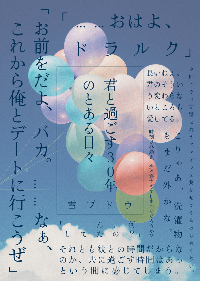 雪ブドウ☆quiet followDONE30年後ドロ祭にて掲載したSSの再掲です。彼らが朝起きて、再び眠りにつくまでの1日の一コマを切り取ってみました! show all(+5 images) Tap to full screen (size:640x900).Repost is prohibited Let's send reactions! freqpopularsnackothersPayment processing Replies from the creator Follow creator you care about!☆quiet follow 雪ブドウDONE30年後ドロ祭にて掲載したSSの再掲です。彼らが朝起きて、再び眠りにつくまでの1日の一コマを切り取ってみました! 6 雪ブドウMEMO94卓やドロ卓で描き下ろしてる立ち絵をまとめてみた!こんなに増えたんか……🤔 8 雪ブドウDONE◆メビロナ展示作品(全年齢)◆脱稿ハイなロナルドと踊ったり、調子の悪いメビヤツのためにロナルドが公園の中心で愛を叫んだりする話。◆ ユーザー番号:T5X95GEGQ3◆期間:2/19〜3/5……約2週間程度、展示は今後もそのままにします。 15 雪ブドウDONE◆ドラロナ展示作品(全年齢)◆俺とドラルクは、本当に付き合っているのか?――そんなロナルドの疑問から始まる短編シリーズ。彼らの関係が恋人同士に変わった事で、本人達も周りも沢山悩んで話し合う。そうして選んだ答えを胸に一歩踏み出していくような、明るい話を詰め込んでみました!◆この展示は今後もそのままにします。 33 雪ブドウINFO2022/07/23(土)Drunk in Long Nightにて配布させてもらった無配を展示します。 1813 雪ブドウINFO2022/07/23(土)Drunk in Long Nightにて配布させてもらった無配を展示します。 1137