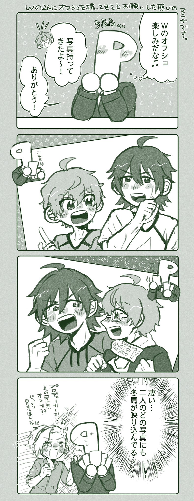 おすし☆quiet followDOODLE今更オフショットネタです❗何番煎じ? Tap to full screen (size:790x2038).Repost is prohibited Let's send reactions! freqpopularsnackothersPayment processing Replies from the creator Follow creator you care about!☆quiet follow おすしDOODLEWの性転換 下書き無しで描いてたから無茶苦茶で見にくくてすみません………夢が膨らむ… おすしDOODLE※衣装交換とか苦手な方はご注意を!冬馬くんにWの着ていた衣装を着せたくて………見たくて……描いてしまった……冬馬くんも膝出しませんか? おすしSPOILERじゅぴファンコンストネタバレらくがきわたしはJupiterのことはファン目線で見ているので、Jupiterとプロデューサーのお互いが信頼し合っている図があまりにも良すぎてニヤちゃったね、、、あんぱんと牛乳食べながらプロデューサーのこと見張る3人愛おしいよ、、、 おすしDONEお題の【冬→享←悠】です!カップリング要素があるのでワンクッションにしておきます🙂↕️お題ありがとうございました!描いててめちゃくちゃ楽しかったです!!!!!当初2ページにしようとしたのに追加で描いてました…………また描きたいですね🫶 3 おすしPAST2019年1月に発行した冬享本のWeb再録です。絵が古いのでフォロワーさん限定にしておきます。当時手に取ってくれた方ありがとうございました!※無断転載禁止この当時、余裕も無くて締め切りもギリギリで印刷も上手くいかなくて長いお話描くの向いてないって凹んでいたけれど見返すとちゃんと形にはなっていて嬉しいな。 32 おすしPAST2018年7月に発行した冬+悠×享本のWEB再録です。あまりにも絵が古いのでフォロワー限定にしておきます。当時お手にとってくれた方ありがとうございました。※無断転載禁止 16 recommended works uuuutan0415DOODLE真幸イチャイチャ mothicawPASTハルシュカラプトルとおじさま 創作のかにょDOODLE【腐】瑠璃と紺青むくなこどもとずるいおとなどっちも子供だけど 5 1104DOODLE今夜も2人、なかよくおやすみ 1104DOODLEスキって言って☺️💕中の人も好きイラストあったらスキって言って貰えたら嬉しいぃっ 2 sterilesoil_BDONEアダチさんは動じない2話目。お尻パーカッション漫画。この回から18禁気味 15 aoume0306DONE前に描いたアレッシー太郎とOVA様のおまけ子どもはでっかいものが好きだから仕方ないね ゆう。REHABILI誕生日おめでとうトッシュ!あなたが産まれてくれたことが本当に嬉しい!いつまでもずっとあなたは私の再推し! muniDOODLEプソンズ72022年7月18日 00:47 9