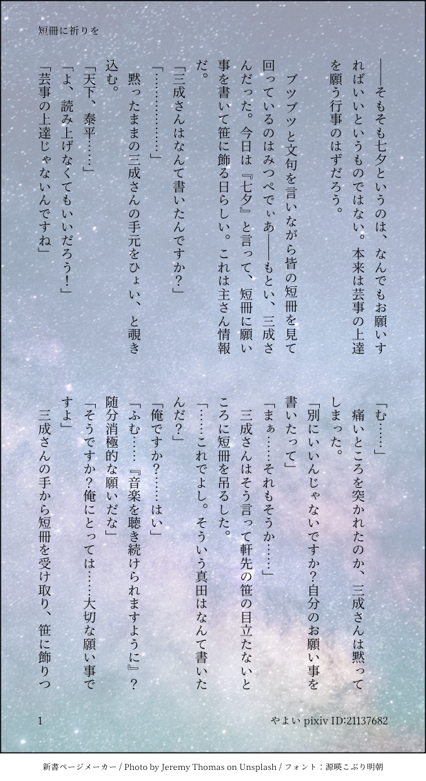 yyi_otkt☆quiet followDONE※2023年の七夕ボイスの内容を含みます🎸の七夕のお願い事がささやかすぎたので、実はこうだったらいいなぁという妄想。🎸→📚風味です。 #戦国腐ライブ #ゆきみつ snowTight #幸三 show all(+1 images) Tap to full screen (size:618x1132).Repost is prohibited Let's send reactions! freqpopularsnackothersPayment processing Replies from the creator Follow creator you care about!☆quiet follow yyi_otktDOODLEずっとこうしたかった 2 yyi_otktDOODLE今日はいい双子の日なので 2 yyi_otktDONE今日はいい夫婦の日と聞いたので。 4 yyi_otktDONE滑り込みセーフのポッキーの日なんか不完全燃焼になってしまった…… yyi_otktDOODLEお誕生日おめでとうございました🥳〆はやっぱり🎸📚で……🫶 2 yyi_otktDONE鮭ちゃん・曙ちゃんからリクエストされたフレーズで🎸📚書きました✌️主さん視点のお話です。▶︎ 📚さん以上に好きな人なんていません 4 related works 隅幸(すみゆき)DOODLE幸三ハロウィン落書き。腐向け。よくあるネタ。(時代背景?何それおいしいの?) 隅幸(すみゆき)PAST幸三落書き達。腐向け。 15 隅幸(すみゆき)PAST3月30日は『無双☆スターズ』の発売4周年と言うことで(???)隠れてイチャイチャする幸三(過去落書き)を置いておきますね…(そっ…)((( *・ω・)つ□ 隅幸(すみゆき)DOODLEくじから妄想を広げた幸三落書き。(腐向け) 2 akebono_aaDONE0821の日🎸📚🐰🔞(♡、濁点喘ぎあり) 2 隅幸(すみゆき)PASTねこ三成殿&ゆきみちゅ 2 yyi_otktDONE🎸📚でバニーの日ネタを🐰 5 隅幸(すみゆき)DOODLE幸「三成殿の日(3月27日)、おめでとうございます!(*´∀`*)」(ぎゅ~)三「あ、あぁ…///」っていういつも通り(???)の無双幸三落書き(腐) 隅幸(すみゆき)DOODLE幸村お誕生日おめでとう!!!(三成殿に『さすがだ、幸村』を言わせたい病) 2 recommended works Shirotalin1106DOODLE幸三延續之前夏日親親的續篇開車還是不太熟練😣 4 jo_jk_ts_gjPAST주나카르 LOG 8 隅幸(すみゆき)DOODLE幸村お誕生日おめでとう!!!(三成殿に『さすがだ、幸村』を言わせたい病) 2 鮭いくらDONE🎸📚ゆきみつ🤫🔞果たして猛将モードになるのかずっと考えてたんだけど敬語と余裕のない攻めが大好きなのでどっちでも👌この絵だと付き合ってるけど、個人的に🎸📚は付き合ってなくて🎸の猛烈アタックがひたすらに見たいです❤❤❤ 2 -木黛-DOODLE狗 2 akebono_aaDOODLE🎸📚好きなとこだけ 4 鮭いくらDOODLE🎸📚メイドの日🤤🤤💕💕💕 akebono_aaDONE🎸📚🔞差分ありだいぶガチのガチでやってるやつは初めて描いたかも🫣ハズカシー(♡喘ぎ) 2 akebono_aaDONE🎸📚🔞 背面 (♡ 、濁点喘ぎ)