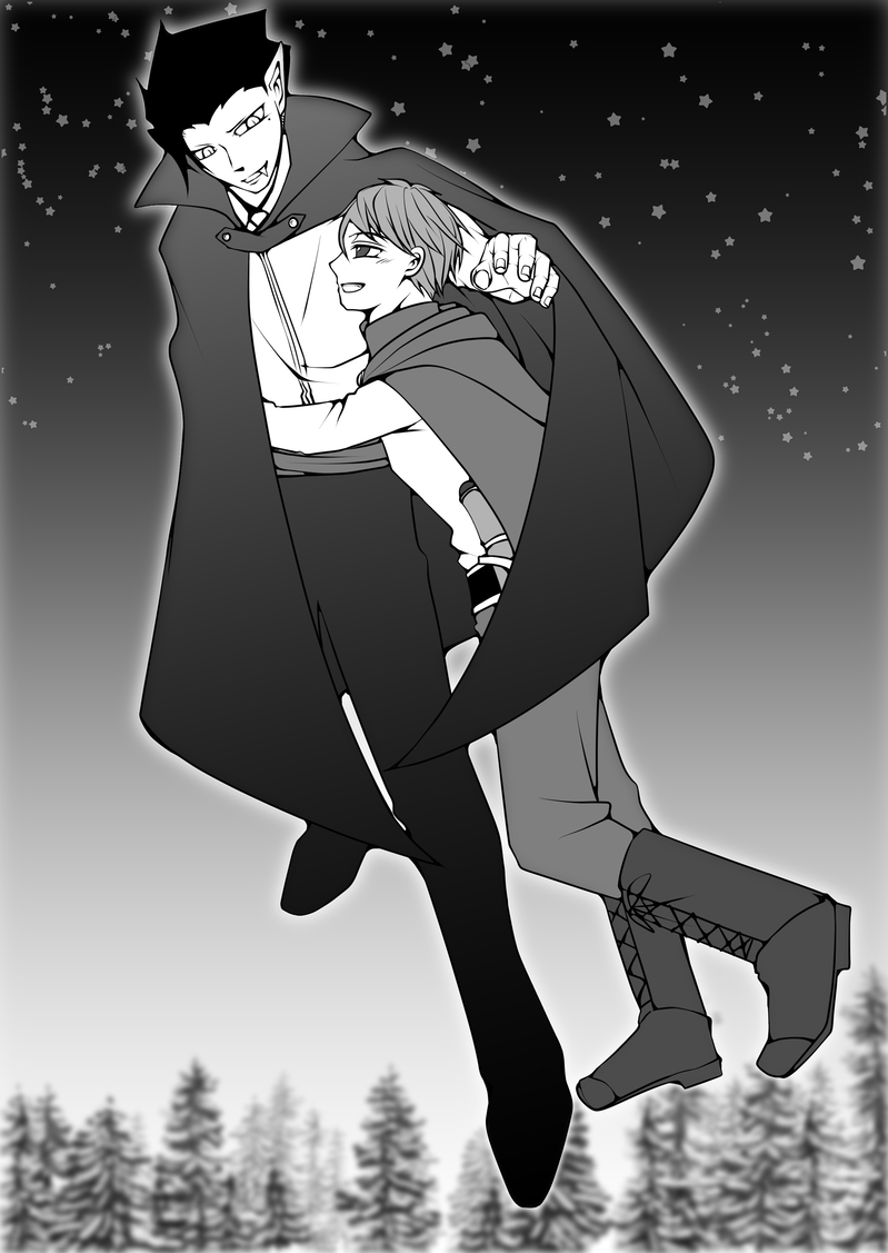 何がすごいって私は作中で二人の服装に関してはほぼ言及していなかった(半田くんがマントしてるってことくらいしか書いていないはず)にもかかわらずイメージばっちりなんですよね。いや、作中で表記しなかったのは単に私の想像力が及ばなくて書けなかったというのが正しいくらいなので、描いてもらって初めてああそうかあの話のふたりはこういう感じだったんだなと自然にしっくりきたんでまぁびっくりしたんですよっていう、そういう……そういう、ね(語彙ゼロ)