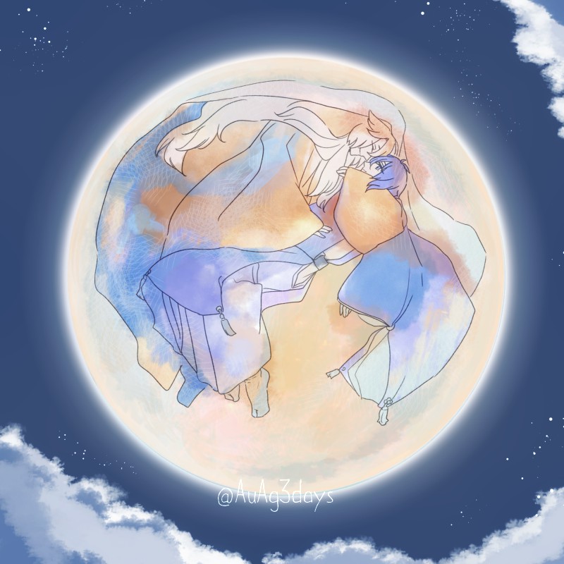 X(twitter)で見かけた綺麗な月の写真がこんな風に見えた、というらくがき…