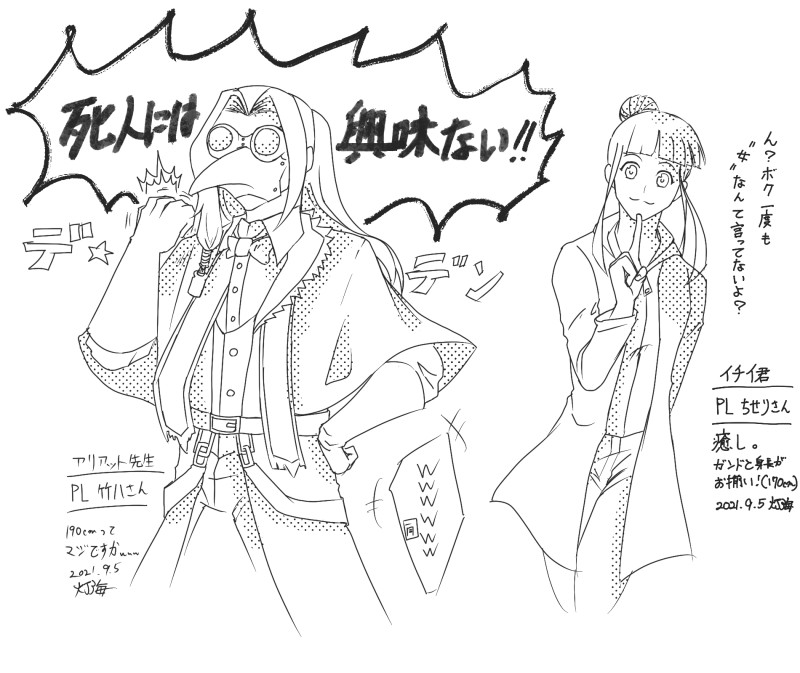 灯海(とうみ)☆quiet followMOURNING更新21.9.9⚠️通過済&ネタバレを含みます⚠️21.8.21、8.24@ブラボ風TRPG【獣狩の夜】アリアット先生(竹八さん)とイチイ君(ちせりさん)お借りしました!【ガンドのキャラシ】https://charasheet.vampire-blood.net/4080571 ##TRPG show all(+6 images) Tap to full screen (size:1900x1600).Repost is prohibited Let's send reactions! freqpopularsnackothersPayment processing Replies from the creator Follow creator you care about!☆quiet follow 灯海(とうみ)DOODLE更新23.9.12ビグライふたり暮らしシリーズのまとめです。↑古、↓新。⚠️ 🔞とリバを含みますのでご注意。 4 灯海(とうみ)DOODLE更新5.13 MTMTEのまとめ 灯海(とうみ)DOODLE更新23.9.12 ビグライビグまとめ 6 灯海(とうみ)DOODLE更新23.9.12 BWII・ネオのノーマル絵まとめノーマルだけど、ネタ絵っぽいのとかもあるよ。 13 灯海(とうみ)DONE更新12.12 お題箱のリクエスト絵のまとめです。⚠️腐要素が含まれているものがあります!↑古、↓新 4 灯海(とうみ)DOODLE更新23.5.13 #幼体ライオくん のまとめほんのりビグライ要素あり 19 recommended works チェラテDOODLEピイソーくんと天使様 3 チェラテDONE女の子( ˙꒳˙ )可愛いですねぇ( ◜▿◝ )2019/03/05 01:40:16 チェラテDONEうーむ…( '-' )またいつか描き直そう2019/03/05 20:53:21 ノヽシ关リPAST白蓮寺満世丸・未緒兄弟(2018) 2 向矢ディレクMEMOフワリ/No.830♀ おだやかな性格だけど、気が強い一人称 わたし 踊れるシンガー志望の子 風が吹かなければ早く動くことが出来ないのを気にしているため、ダンスで早く動けるように特訓している が、激しく動いたり驚いたりすると、特性のわたげがうっかり発動して、辺りがわたげまみれになっている キイと一緒に行動していることが多い 向矢ディレクMEMOラルゴ/NO.080G ♂ のんきな性格で気が強い とくせい マイペース 一人称 ボク 鎧島出身 ゆるい喋り方で、とくせい同様とてもマイペースでスローペース気質 ある目的の為故郷の島を出て本土へ来たのだが、道中その目的を忘れてしまい迷子になっていた所、リーズニィたちに保護された 無事故郷に戻りがらなつの腕輪をつけた瞬間、大体のことを思い出し凛々しく進化した 2枚目は進化前 2 向矢ディレクMEMOミフユ/No.873♂ 慎重な性格で暴れることが好き とくせい 鱗粉 一人称 私 元は冠雪原のある領主に仕えていた侍だが、ディーレの手持ちになる前まで流浪人の身だった サクスと相対した時、彼から感じるつわものの雰囲気に惚れたのと、ディーレから強い相手と戦えると言われ、手持ちになる 喋り方がやや古風 タイプ相性関係なく相手が自分より強いと燃える(氷タイプだけど) 向矢ディレクMEMOウィック/NO.849(ロー)♂ おとなしい性格 昼寝を良くする 同種界隈で、伝説になっているバンドの元ベース 作曲もしていたが、ボーカルがウィックの作った曲を自分が作ったと偽ったことが原因で、バンドは解散 その後消息不明になったが、巨個体となり暴れ回っていたのをディーレに助けられ彼女の手持ちとなる ゼマの音楽に対する情熱に感化され、彼の夢をサポートすることを決めた ゼマのことは兄弟と呼ぶ アメかのうMEMOスーツ大好き人間のくせに、常時スーツを着てる子が居ない!と思って創ってしまった子。 5
