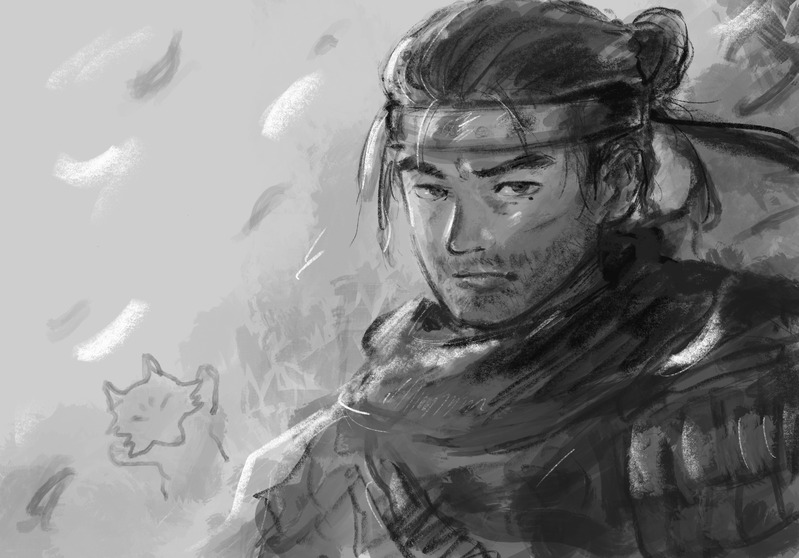 ゴーストオブツシマらくがき。境井仁、カッコ良すぎる。ハマって間もない頃に勢いで描いた落書きなので、ホクロや傷跡が間違っていたり描き忘れていたりしてしてすみません…