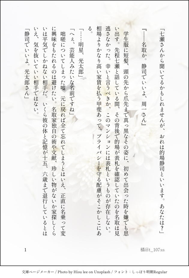 いつか書きたいと思っている「周一さんと出会う直前まで体と記憶が退行した静司くんを名取さんが預かる話」のメモ。