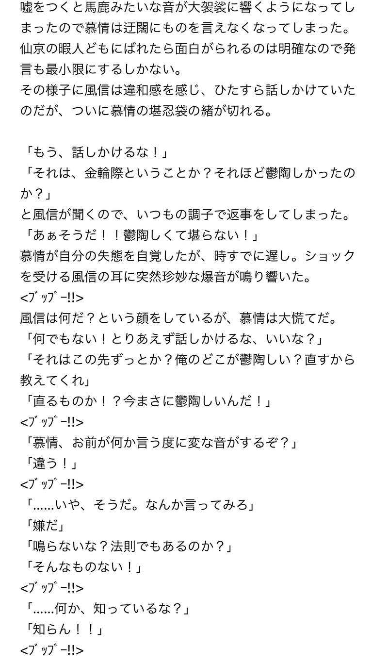 風信──なんでアイツは慕情が邪魔されたくないときを見計らったように連絡を寄越すのだ。身じろぎせず、火がつきそうなほど画面を睨みつける。だが、次に現れた名前に思わず眉が動いた。