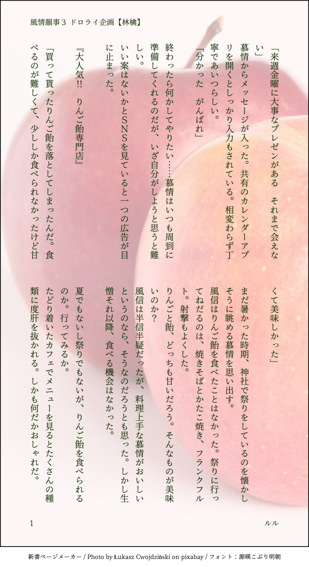 ルル🏹⚔️☆quiet followDONE風情韻事3【林檎】ドロライ企画に参加させていただきました🖋️お疲れ慕情を労わる風信。ドストレートな愛情表現に疲れも癒えていきます🍎🍎🍎花怜も来てくれました🥰お題からお話作るのは初めてでしたが、楽しかったです。気が付けば6本書いてました。また機会があれば✨ #天官賜福 Heaven Official’s Blessing #風情 wind #风情 flavor #fengqing show all(+3 images) Tap to full screen (size:618x1132).Repost is prohibited Let's send reactions! freqpopularsnackothersPayment processing Replies from the creator Follow creator you care about!☆quiet follow ルル🏹⚔️DOODLE王様ゲーム👑✨本編終了直後に暇を持て余した裴茗と霊文がいわゆる王様ゲームをする際に皆さんを巻き込む話⛰️🍁 ※途中に風情と微量のネタバレを含みます 14 ルル🏹⚔️DOODLE嘘発見器📣ブッブー慕情が嘘発見器みたいな呪い?にかかってしまって始まる风情の話 3 ルル🏹⚔️DONEエイプリルフールにまつわる南扶のお話🍀4月1日の遊びを知らないだろうと思って扶揺が「嫌いだ」と南風に言っていると、風信が来て「嘘をついていい日だろう?」と爆弾を落としていく話。风情編から数年後風信慕情≠南風扶揺 4 ルル🏹⚔️DONEエイプリルフールにまつわる風情のお話🍀4月1日に告白した風信を嘘だろう…と振った後に、その風習を風信は知らなかったと知った慕情は漸く信じるけど、自分のせいで両片想い…と焦る話。 4 ルル🏹⚔️DONE別のひな祭り風情🎎pixiv掲載の「太陽を待つ高嶺の花」の後日談です。https://www.pixiv.net/novel/show.php?id=21646736 4 ルル🏹⚔️DONEひな祭り風情🎎の話🌸仙楽→本編終了後※息をするように仙楽の風習を捏造してます※ちょっとコンプラ怪しい発言あるけど大目に見てください 4 related works smallsankakuPROGRESSごはんっていいよな……って思って書いてみた、しかしうまくいかない。むむむ。風情未満。 2310 銀蝶々DONE연납さん(@renconabductor)の素敵南扶イラストからいつもの如く妄想劇場を勝手に書いたら、その場面を漫画風のイラストにしてもらっちゃいました❣️ある日の南扶ちゃん🤭💖English version and Korean version is attached below the Japanese version💗💗💗 4 itHayuRiMAIKING星天壺のつづき。慕情が疑似妊娠。胎霊騒動についてさわっています。ネタバレ配慮しません。妊娠ネタしか思い浮かばないので一回好きなように書きたいと思っています。今回さわりだけなので唐突に叫んで唐突に投げます。考察ではなく捏造です。 8044 Chenn_JOEDOODLE #fengqing #风情 #TGCF #天官赐福 2 ルル🏹⚔️DONEひな祭り風情🎎の話🌸仙楽→本編終了後※息をするように仙楽の風習を捏造してます※ちょっとコンプラ怪しい発言あるけど大目に見てください 4 ルル🏹⚔️DONE別のひな祭り風情🎎pixiv掲載の「太陽を待つ高嶺の花」の後日談です。https://www.pixiv.net/novel/show.php?id=21646736 4 はるしDOODLEこっそり桜桃食べようとしたら風信に気付かれてたパターン。そして風信もおねだりします🤤 銀蝶々DONEXにて感想リプ頂ける度に甘々えっちな萌えシチュを台詞のみで書く、というチャレンジをした6本分を、情景描写付きで纏め1本のお話にした、これは🔞完成版です🤭💞Xのポスト直書きでは🔞は出せないので、台詞だけ書いて皆様にお好きに妄想してもらう作戦でした😝私の脳内ではこうなってましたという答え合わせ?ww(纏めたらちょっと変わったけど😅)皆様の妄想と違ってたら2度美味しいといいな😂❤️ 8 noa/ノアDONE[FengQing]花怜のアイスクリームCMが可愛かったので、風情の二人にも食べてみてもらいました。玄真将軍の舐め方がやけに色っぽくて困る風信がいるだけで、特に中身はありません。※二人は神官ですが、地上は現代っぽいです。設定は適当です。 4775 recommended works savi_yamuchaDOODLE筆ペンブラシの試し書き。 tsuseTRAININGアニメ天官賜福大変楽しく拝見しています。殿下も三郎も南風も扶揺も好きだ…!!!! ryo-tDOODLEまだ鬼王になるには力が足りない。そんな時期の三郎の姿をらくがき。 Sketch1008DONE今回のオンリーのサクカです!本当に殿下には花が似合う…ご生誕おめでとうございます! PADA🐼DONE花憐オンリー開催おめでとうございます!!三郎がお風呂上がりの殿下どきどきしちゃうお話4ページです!背景は描き方わからないので心の目で見てください♪パスワードは全年齢なので特に設定しません!ゆっくりしていってください♪ 4 salmoneyeballsDOODLEnrhdくんとmtrg手ぐせに任せたら、・顔が幼くなる・手足(というか体)が大きくなる等の気付きを得た 4 藤の江DOODLETGCFまんがいらすとまとめ⑦ まとめ⑥以降の漫画を中心にまとめました。決定的なネタバレは無いと思いますが、気になっちゃったらすみません… 38 水戸海月🪼DOODLE我慢できない殿下と焦らす三郎 2 水戸海月🪼DOODLEちっちゃい三郎が可愛くて💕🥰