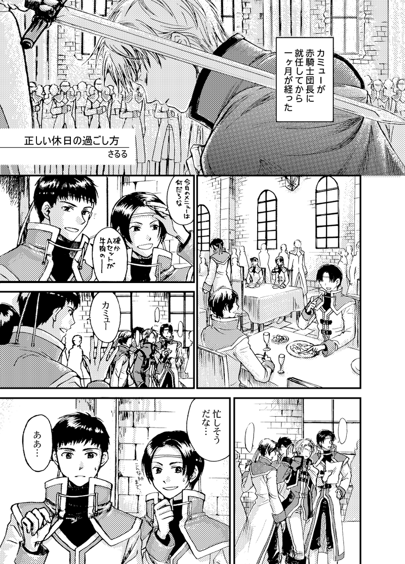 saruru_ko☆quiet followPASTむかしむかし…とおいむかし…(昔話風に)アンソロに参加させてもらった原稿です。スキャナ壊れてたせいで線画がひどいので、スキャンし直してアップするつもりだったんですが、手間がかかりすぎて進まないので諦めてそのままアップ。テーマ(?)は疲れすぎて性欲すら失ってる片想いカミューでした(ひどい) show all(+7 images) Tap to full screen (size:1000x1393).Repost is prohibited Let's send reactions! freqpopularsnackothersPayment processing Replies from the creator Follow creator you care about!☆quiet follow saruru_koPAST2009~2014年あたりに描いたカラー絵をいくつかまとめました。らくがきもねこみみやパラレルもごちゃまぜなのでお気を付けください。 14 saruru_koPAST昔片恋企画というものがあって、それに出した漫画です。これでもかというくらい片恋にしたら、皆実は両思いな幸せそうな片恋話ばかりだったので大変肩身が狭かった記憶があります(いや私も本当はそうなんですが)このあたりから不憫カミューと言われ出した気がしないでもない。 3 saruru_koPASTマチパ2で描いた漫画です。カップリング要素あんまりなし。 2 saruru_koPAST初代マチパで描いた漫画です。比較的カップリング色強めのいつものモノローグ系。 6 saruru_koPASTマチパ5で公開していた子騎士小話です。文章はやよい日生さん、絵を私が担当してます。日生さんから許可が出たのでこちらにもアップ。 8 saruru_koDONEマチパ6のお題「夜会」でした。騎士服が普段の制服なら、儀礼服もあるやろ!ということで式典+夜会に出席のイメージ。良い機会なので過去に描き切れなかった構図にチャレンジしたのですが、時間のない時に描くものではなかった…。