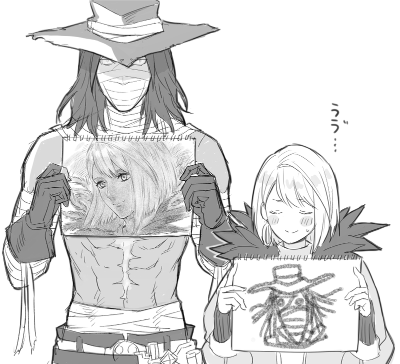 お互いの似顔絵を描いてみた主従