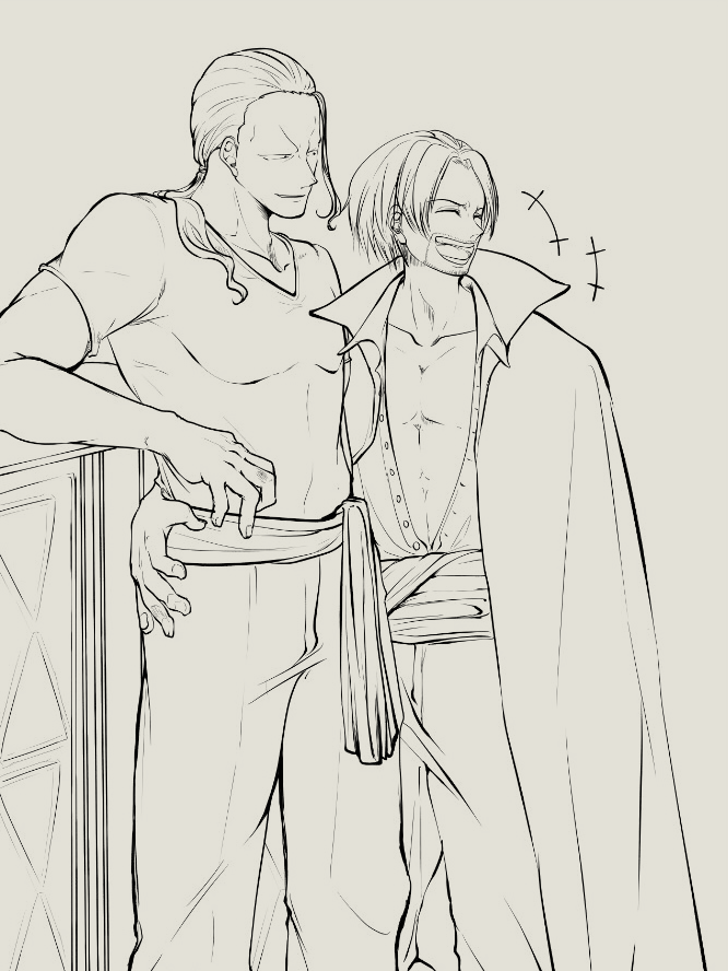 この男は相手の方が背が高かろうが歳上だろうが関ふとしたときにナチュラルに意味もなく無意識で腰を抱いてそうだなあという絵。そしてそれに全く動じないベックはいる。きっといる。