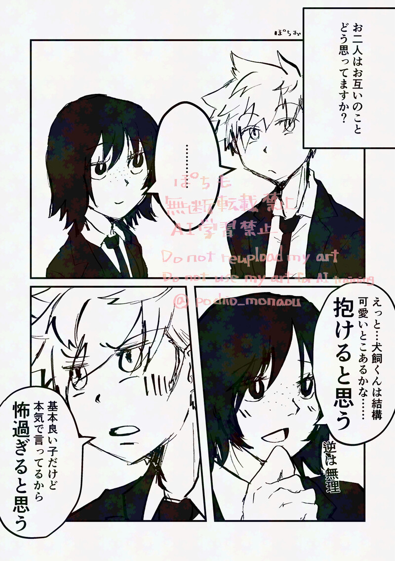 ぽちおのポイピク☆quiet followPASTついでに昔描いた鳩犬っぽい鳩と犬漫画も再掲こんな内容だけどこの二人に恋愛矢印は全く無いのである。そういう二人が好き Tap to full screen (size:1398x1984).Repost is prohibited Let's send reactions! freqpopularsnackothersPayment processing Replies from the creator Follow creator you care about!☆quiet follow ぽちおのポイピクDOODLEワ単行本初読みの時に☃初めて見た時の感想絵出てきた。今にして考えるとたちかーさんにイチャモン付けたかったのが大きそうで草 ぽちおのポイピクPASTついでに昔描いた鳩犬っぽい鳩と犬漫画も再掲こんな内容だけどこの二人に恋愛矢印は全く無いのである。そういう二人が好き ぽちおのポイピクPAST犬飼お誕生日記念の過去漫画再掲その割に内容は誕生日とは全く関係ないです 4 ぽちおのポイピクDOODLE犬飼お誕生日おめでとう!これはお祝い絵というより落書きである ぽちおのポイピクPAST昔描いた☃大好き🐶の漫画。🐶は太りやすい体質なので体型維持に気を遣ってたら良いなぁという妄想でした。 ぽちおのポイピクDOODLE唐沢さんが犬飼を将来部下にって狙ってる話を書いてみたい、と5〜6年くらい前に言ってネームだけ描いたやつがな……一部出てきてな……今もめちゃくちゃ見たいよそういう話(読み手思考になっている) recommended works ぽちおのポイピクDOODLE寒いですなぁ(タグ付けお試し) 2 ぽちおのポイピクDONE昨日ツイとシブに投稿した漫画からセルフお気に入り二宮隊女子鳩原もひゃみちゃんも可愛いんじゃ〜〜〜❤️ 2 心火ゆまPAST【WT】本誌で二宮隊が出てきた頃の出水受 6 あるびれおDONEお花見の風間と太刀川 ゆら(YURA)DOODLEワートリあにめ見ながら落書きんちょ✍ 3 nariDOODLE他は少年ぽくても、手が男っぽかったらいいなーと思う手フェチ nariDONEお誕生日おめでとうございました㊗️お餅たくさん食べてね fkow9DONE※転載禁止※ nariDONE #リプきたキャラを赤面させる鳩原・漆間・王子・真木 でした!本編ではなかなか赤面見られそうにない子たちばかりで絶妙な人選だと思いません!?(リプくださった方々ありがとう😊)すごい新鮮で楽しかった!