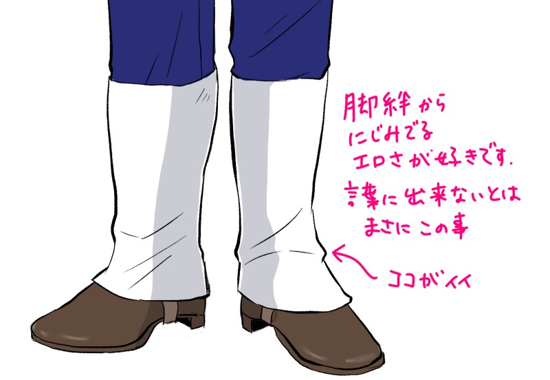 巻いてボタンで止めるあの脚絆が好きすぎるんですが全身描かないと脚絆描けないので脚絆だけ描くか…と思って描きました、満足です