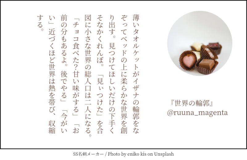 るぅな☆quiet followDONE『世界の輪郭』カクイザ140ssフォロワーさんにプレゼントした台湾華語版も一緒に。 ##カクイザ show all(+1 images) Tap to full screen (size:910x590).Repost is prohibited Let's send reactions! freqpopularsnackothersPayment processing Replies from the creator Follow creator you care about!☆quiet follow るぅなMOURNING竜獅⚠R-18この前書いた小説の場面絵。ほぼラフ。 2 るぅなDONE『燃やし尽くして飲み込んで』(竜獅)⚠R-18梵🔟りんどう×社会人しおんツイッターで公開した小説(1p〜14p)と加筆部分(15p~31p)です。テレセクとか自慰とかする。様々な性癖に寛容な人向け。※リスインはプロフ読んでから申請お願いします! 32 るぅなMOURNING出す予定のない竜獅本の表紙進捗。下に行くほど完成に近づいているかもしれない。 5 るぅなPROGRESS⚠testラフ、🔞、作業進捗 2 るぅなDONE『レグルス』(イザナ+獅音)以前書いた小説に「腕に根性焼きが入ってるしおんちゃん」という設定のものがあり、そこから派生した話です。3ページ目は吹き出しで隠れてない状態のお部屋です。 3 るぅなPROGRESSかくぃざ漫画の進捗。(星座のやつのかくちゃん側の話) 4 recommended works るぅなDONE『七竈と愚行』(竜獅)梵天竜胆×社会人獅音ある日偶然数年ぶりに再会を果たした二人。竜胆は自分と獅音の生きている世界の違いに愕然とする。 15 るぅなDONE『雨上がりの愚者たち』(竜獅)梵天竜胆×社会人獅音獅音の部屋で雨が上がるのを待つ竜胆。他愛もない会話をしているうちに竜胆の中で獅音に対する感情が変化していく。※恋愛感情を伴わない蘭←竜とイザ←獅が前提として含まれています。※女性関連の話題がでます。 13 るぅなDONE『灰色と群青の狭間で』(竜獅)梵🔟竜胆×社会人獅音鉄パイプを持って駆けずり回っていたこともあったよね、な二人。二人とも年少リング(刺青です。詳しくはぐぐってください)を入れている設定。 3 momotaru870DOODLE「んっ、もう、そこばっかり…。無いものをそんなに舐めなくてもいいんですよっ」「柔らかくて旨いんだ」パスワード:猫猫は羅半を何と呼ぶ?◯◯◯眼鏡(ひらがな3文字) CoreArdeDONEStancest minicomic for the holidays exchange on the server. WARNINGS ⚠ Noncon, drink spiking, somnophilia. 3 Vahn_aaDOODLEAre you over 18? (yes/no) らるるDOODLE騙すつもりが絆されて4にて掲載させて頂いた漫画その2 ヴィラヴィラ編 9 らるるDOODLE騙すつもりが絆されて4にて掲載させて頂いた漫画その3 プロヴィラ編 9 IsshokutaSMEMO𐊢𐊫𐊢---------------『LETS泥酔RTA』作▸布毛様KPC/KP北門 柊南/六田さんPC/PL山桐 静夏/犬桃間仲木 言世/たまさん柑子木 清高/もにゃさん--------------------見守りSKPそもさんもありがとうこざいました!リアル飲み会忘年会たーのしかった! 2