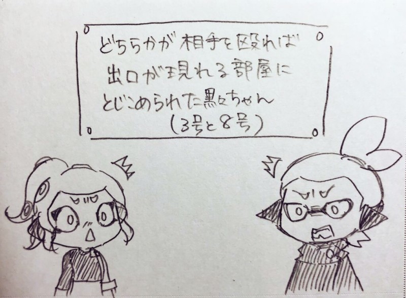 黒々は壁に「どちらかが相手を殴れば出口が現れます」と書いた紙が張られた部屋に閉じ込められました。