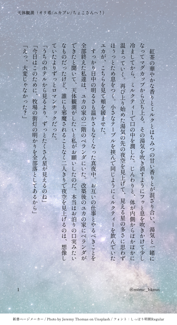 二人きりで夜空を見上げるお話。
