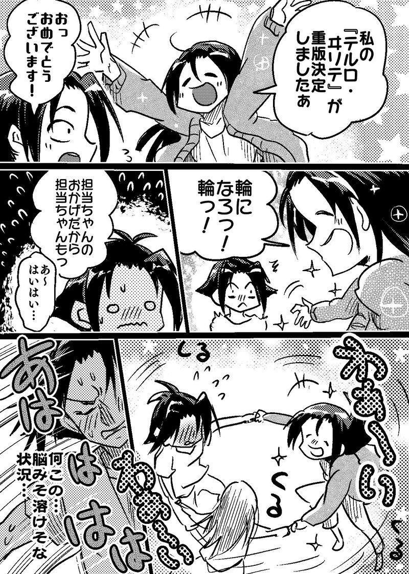 重版嬉しくて回るエルム・ナキュ(?)。