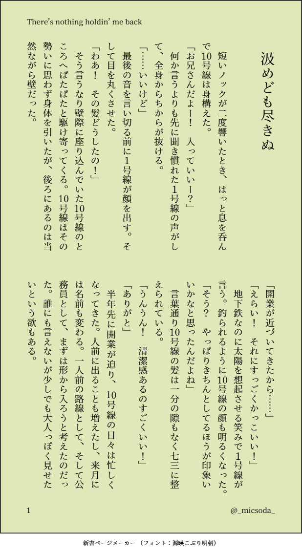 真鶴(_micsoda_)☆quiet followDOODLE【SI】汲めども尽きぬつきあってるSIの話です。6/10に書き始めたので6と10時代のふたりを含みます。 ##SI show all(+11 images) Tap to full screen (size:618x1132).Repost is prohibited Let's send reactions! freqpopularsnackothersPayment processing Replies from the creator Follow creator you care about!☆quiet follow 真鶴(_micsoda_)DOODLE【AI】黒豹みーたんとさよならの話5300ちゃんのあれを見てカッとなって書いたらくがき小話です。※みーたんが黒豹なのでご注意ください。 5 真鶴(_micsoda_)DOODLE【AI】たかが空腹、されど空腹空腹についてのAIのらくがき小話です。過去の16を含みます。※最中についての回想があるのでR18をつけていますがやってません※18歳以上ですか?y/n 7 真鶴(_micsoda_)DONE【AI】ラブアンリミテッド十年後~の十二周年おめでとうございます!元旦のうさぎネタとそこはかとなく十年後~を踏まえた小話です。甘め。 7 真鶴(_micsoda_)DOODLE【SI】出来不出来/こうして愛になるSさんを曇らせたくて書いた暗めの話です。このふたりなら何でもいい方向け。※後味が悪過ぎたので書き足しました。書き足し部分がSIなのでそれにともなってタグをつけました。 23 真鶴(_micsoda_)DOODLE【AI】プロポーズプランナーAIですが、みーたんは不在でAさんともぐたんがプロポーズについて喋っているだけの話です。十年後~がプロポーズにはならなかった場合。 7 真鶴(_micsoda_)DOODLE【SI】汲めども尽きぬつきあってるSIの話です。6/10に書き始めたので6と10時代のふたりを含みます。 12