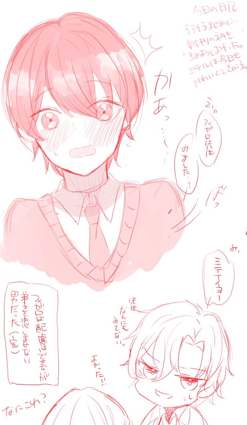 伊勢海老☆quiet followDOODLE中身は特にないです #日記 diary Tap to full screen (size:2060x3541).Repost is prohibited Let's send reactions! freqpopularsnackothersPayment processing Replies from the creator Follow creator you care about!☆quiet follow 伊勢海老DONE 伊勢海老DOODLEどうか、忘れないで 伊勢海老DOODLEしょうがないことだとわかっていても、子どものような嫉妬をしてしまう(フィガミチ♀ 女体化注意)私のフミはいつもフィが嫉妬すること多いんですけど、ミチの嫉妬も絶対かわいいなって 伊勢海老DOODLE賢者に俺の自我が乗り移ってたら合コンレベルの勘違いをミチウに教えているところだったので無くてよかったです(気持ちバニー) 伊勢海老DOODLE中身は特にないです 伊勢海老DOODLEこれは原稿に耐えられなくて描き始めた顔マンガ(気持ちと心意気はフィガミチ) related works なまこ(ほたて)DOODLEかいたらひけないかなーとおもいながらかいたけどひけませんね 宝くじは外れました nekoana1DOODLE手書きブログのウォール機能でらくがき日記まとめ 7 なまこ(ほたて)DOODLE なまこ(ほたて)DOODLE nekoana1DOODLE手書きブログのウォール機能でらくがき日記まとめ。 22 なまこ(ほたて)DOODLE なまこ(ほたて)DOODLEマイカテゴリタグなんてのあったのか!最近寒くて下書きが綺麗に消えない なまこ(ほたて)DOODLE倒すの字が違った サンテンナナDOODLE🍓 recommended works あまがしDONEお兄ちゃんって呼ぶ理由 本編、転校前のお話。 #創作 #漫画 2 ばこ🦐TRAINING #日記 にじあとPROGRESSたった1コマの下書きに2日かかるマン参上 ぁぉぃっTRAINING7/12いつきのヒジソウへのお題は『いつから当たり前になったの』です。http://shindanmaker.com/392860 三上空太DONEハイハイはじめました のほほ〜んなちび日記DOODLE初投稿は今日の私の一日。天気予報が40度でうちにはクーラーがないので扇風機が親友だった。。。夏は好きだけど30~34度くらいで十分。皆さんも熱中症とかに気を付けて下さい。水を沢山飲もうっと。 石田。CAN’T MAKE家に遊びに来たflowerちゃんのことをレンくんが男子だと勘違いしていろいろパニックになっちゃう漫画のラフを描きたくてふわーって何も考えないで描いてしまい、話が急展開になりすぎたのでボツになったやつです ショウDOODLE sumewanTRAINING今週の迅くんに感情移入(?)しちゃって、もうほよび君を最終回のその先まで連れてってやらなきゃいけんと思ってます(?) 4