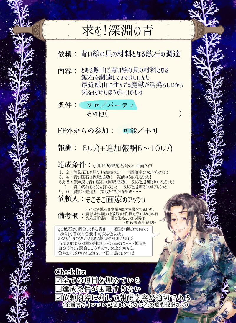 ・過去に参加していたアフター期間の支部企画の絵→## 企画名-キャラ名-(神守島のみ3人いるので-自宅-となっています)