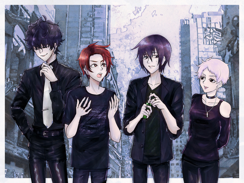 『神守島に祝祭を』の遠野詩音とV系バンド『ReM』のメンバー絵です。いつか描こうと思って放置していたものをリデザインし、ようやく形にしました。