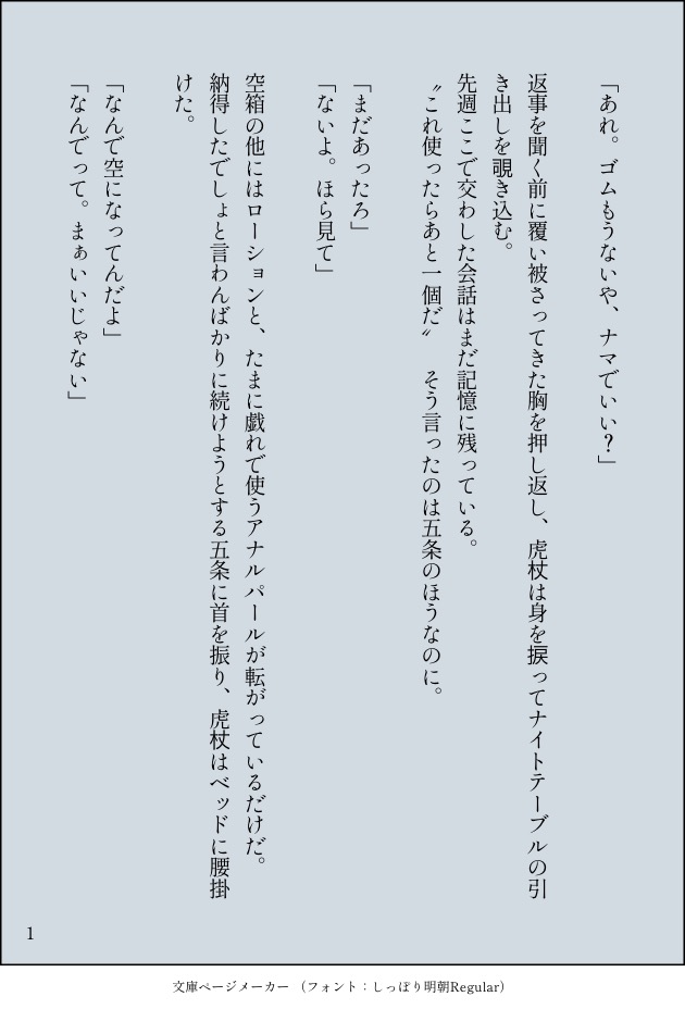acorn_waves☆quiet followDONE【五悠】浮気を許さない西i中iのi虎 show all(+8 images) Tap to full screen (size:630x928).Repost is prohibited Let's send reactions! freqpopularsnackothersPayment processing Replies from the creator Follow creator you care about!☆quiet follow acorn_wavesDONE【五悠webオンリー空🍊4記念】②地下室の二人をテーマに書きました 4 acorn_wavesDONE【五悠webオンリー空🍊4記念】①地下室の二人をテーマに書きました 5 acorn_wavesMEMO【五悠】文章にする気力がなかった走り書き 256 acorn_wavesDONE【五悠】それぞれ片想いしてて恋愛相談する仲だった二人がうっかり……な話※呪専パロ※モラルなし 2012 acorn_wavesDONE②【七灰】【五悠(未満)】オメガバ。→一つ前の話の続き 3 acorn_wavesDONE①【七灰】【五悠(未満)】オメガバ。番に興味なかった先生が、七灰のところに生まれた三つ子に会って新人補助監督でアルファの🐯とビッチングで番になる話。→続きます 3 recommended works しもふりCAN’T MAKE RpinDOODLE天狗趴囉"非日常界線"本篇後續,但沒看過本篇應該也無礙 20 chummnDONE②この前のやつhttps://poipiku.com/IllustViewPcV.jsp?ID=2985743&TD=4770709 kaduki☺︎︎︎︎DOODLE*五悠この背中をギュッて握る手がとても好きなんですよねぇ🤤…というrkgkだから攻には上だけ着てて欲しかったりもします🤤3枚目は角度を変えて、五の幸せな表情を💕 3 v90qtORDLs42cfDDOODLE🔞なお話五悠♀ネタいつも私は不健全で生きている。アホ雑エロ 1132 raroDONE[ケモ五悠]⭐︎五悠似のケモと出会う五悠またまた犬(先輩は狼犬...?)化五悠です!色々反応くださってありがとうございます😭ケモが[好き]な方は[]内を小文字ローマ字にしてパス入れて見てください〜※今気づいたけど先輩のサングラスは空気読んで存在感消す能力持ってます。0202_loverice様、エアスケブ依頼ありがとうございました! 7 koooog1208DONEだわちゃん( @dawawanwan ) 、あまざけちゃん( @amazake5u ) おふくちゃん( @ofuku0720 ) ぴいちゃん( @PFl6m ) 私でだわちゃんお疲れさま記念でごゆ絵チャしました!!ひゅーひゅーパスワードは18才?(yes,no)でお願いします 2 koooog1208DONE #五悠5️⃣🐯ふぇPASSはプロフ欄誕生日4桁です(フォローしていただけると表示される設定にしてあります 2 plapupy8SPUR ME🔞Ivantillเปิดดูระวังหลังด้วยนะคะ 4