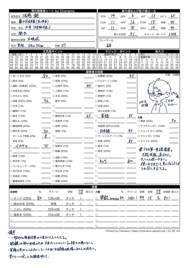 うちの子たちの探索者シートです。