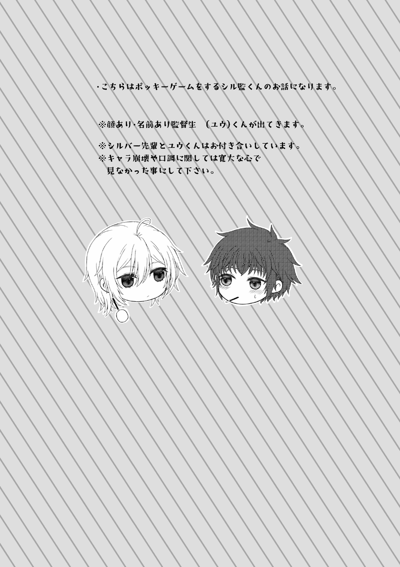 しゃも☆quiet followMAIKING11/9 監♂受けWebオンリーイベント Out of This Worldのシルバー×男監督生です。※シル監♂※創作男監督生♂※名前(ユウ)呼び※シルバー先輩とユウ君がポッキーゲームするお話です show all(+5 images) Tap to full screen (size:2797x3969).Repost is prohibited Let's send reactions! freqpopularsnackothersPayment processing Replies from the creator Follow creator you care about!☆quiet follow しゃもMAIKING11/9 監♂受けWebオンリーイベント Out of This Worldのシルバー×男監督生です。※シル監♂※創作男監督生♂※名前(ユウ)呼び※シルバー先輩とユウ君がポッキーゲームするお話です 6 しゃもDONE3/2 I’m Yours (男監督生受けWebオンリー)のシルバー×男監督生です。※シル監♂※創作男監督生♂※名前(ユウ)呼び※シルバー先輩のおめかしバースデーのホームボイスのネタバレがあります。※前回UPした物の完成バージョンですっ※後日改めてpixivに載せます 12 しゃもMAIKING10/13〜14 You’re Nowhere (男監督生受けWebオンリー)のシルバー×男監督生です。※シル監♂※創作男監督生♂※名前(ユウ)呼び※シルバー先輩のおめかしバースデーのホームボイスのネタバレがあります。※途中も途中です。色々白いです。続きは誠意製作中、完成したらpixivに載せますorz 4 しゃもMAIKING4/21Shiny flower and you! 本と薔薇とあなたの日(男監督生受けWebオンリー)のシルバー×男監督生の作品になります。※シル監♂※創作男監督生♂※名前(ユウ)呼び※背景が白いですorz 6 しゃもDONEある昼下りのお話。※シル監♂※創作男監督生♂※名前(ユウ)呼びほのぼのとお昼寝しているシル監のお話です。6/27の監督生♂受けwebオンリーで公開した作品になります。 7 recommended works うどんDOODLESNS風ケイ監 twst49696161PROGRESS三十路の幼児化を実現させる。 3 薄荷水翳DOODLEマブ→監♂(デュースはまだ無自覚)監督生は出てきませんが男です。 3 s_o_r_a_o_79DOODLE班三(結腸チャレンジらくがき続き)18↑?(yes/no) おんみDONEジェイ監♂の聴き入る角度 sayamame_mDONEツイッターにあげてたやつの再まとめです。ピクシブにあげるつもりでしたが、しばらくポイピクにあげようかなと思ったりしています 12 凛太郎(元 孝助の創作垢)DONEようやく監督生くんのプロフィール作りました。書ききれてない事も多いですが、ひとまずはこんな感じです。テンプレはお借りしました。ありがとうございます。 2 mao2ze2DONEアズ監♂男監顔有 sakipokochinDOODLE特級ゆとナナチャン