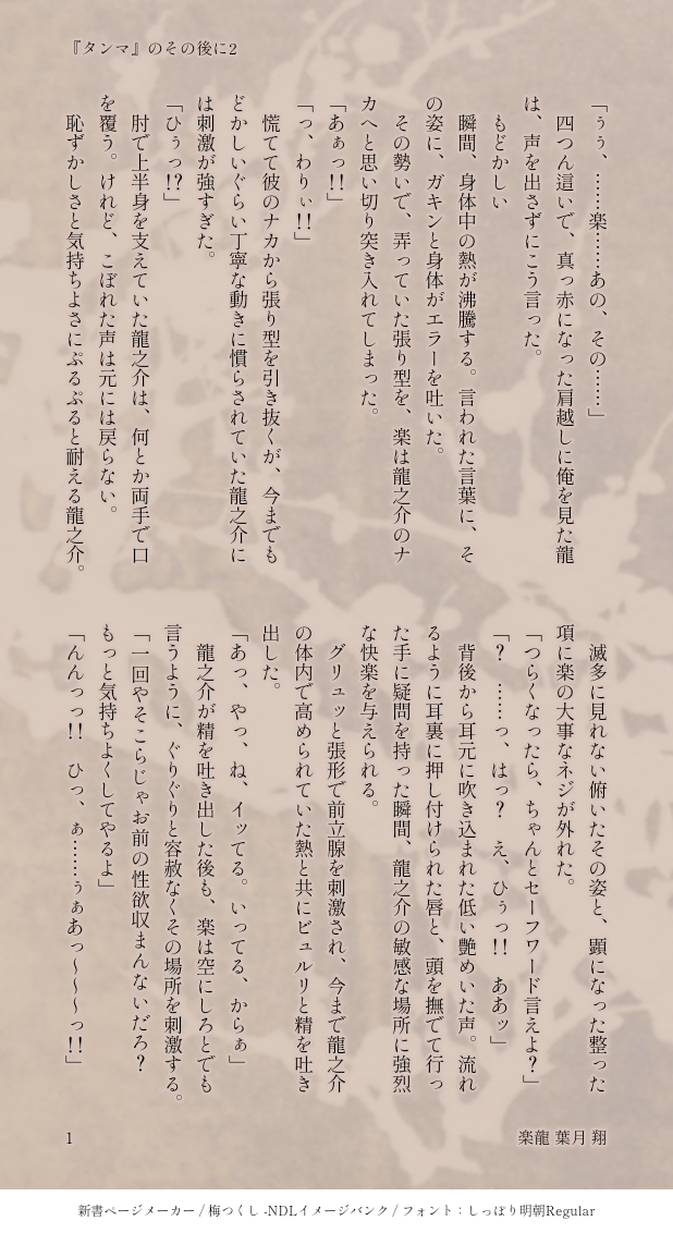 ひとりで欲を吐き出そうとする龍之介の話。