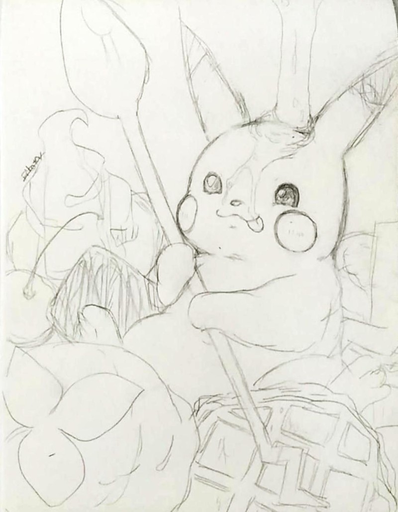 ポケモンスイーツイラスト集『ギュッ★詰め!』の下書き(ㆁωㆁ*)