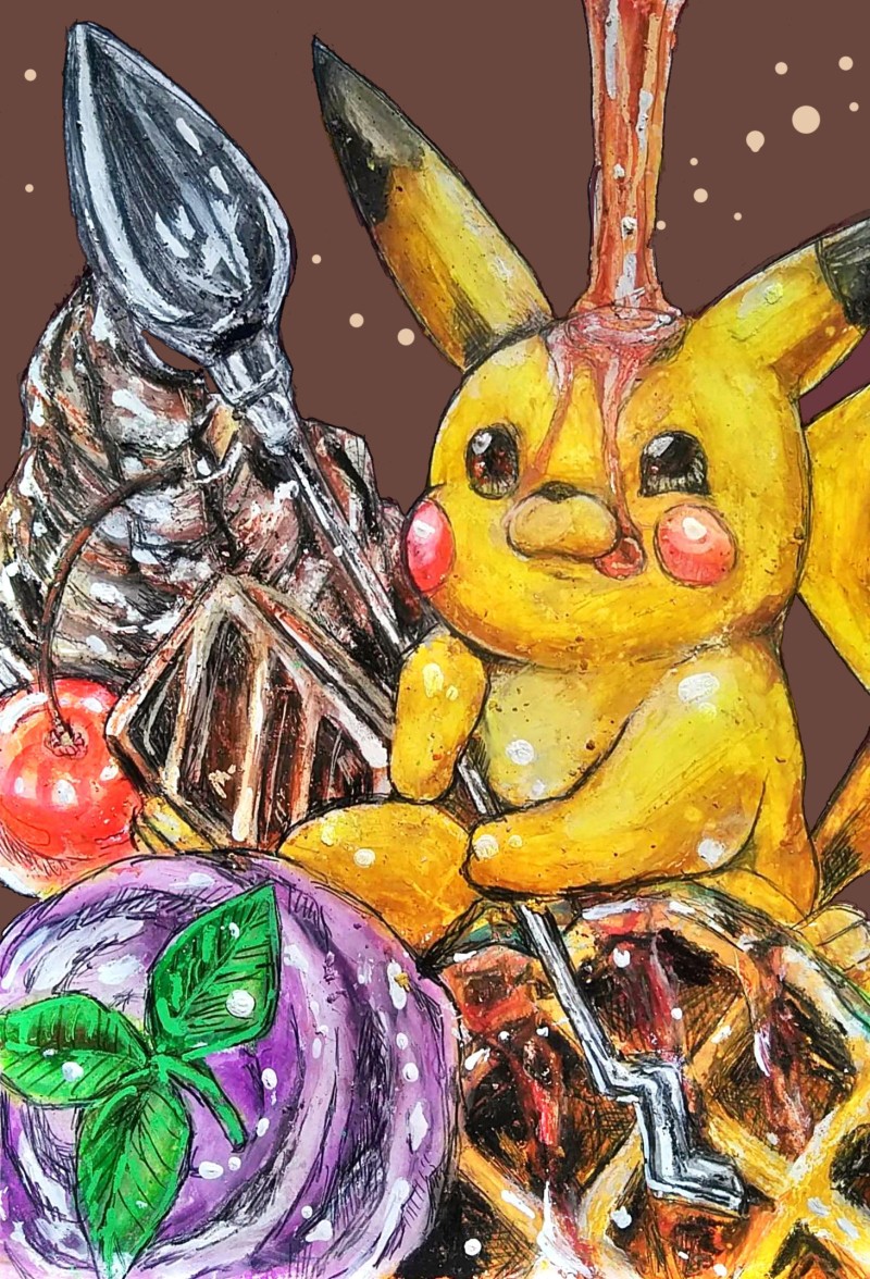 落書きやクレヨンで創作、ボンバーマン、カービィとカクテルやお菓子を主に描きます。