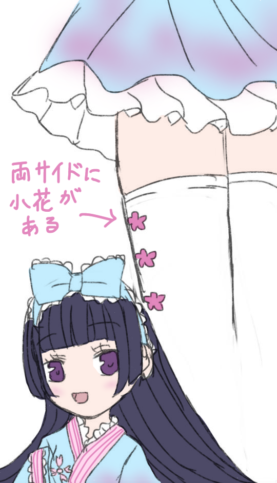 うちの子、桜華(画面下部にいる女の子)はニーハイをはいてる。小花が3つあるのがポイント。スカート結構短いので絶対領域(*´ω`*)