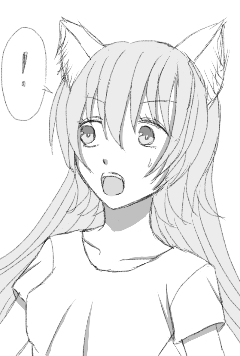 突然思い付いて描いた芙雪の驚いてる顔。「あれは何だ!?」「あ、忘れてた!」とかのイメージ。表情が顔に出やすいって設定なのでこういう表情もありかも?