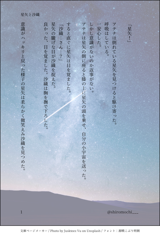 shiromochi___☆quiet followDONE星矢と沙織の話。その1。宇多田ヒカルのStay Goldを聞いていたら思い付いたので書いた。 show all(+2 images) Tap to full screen (size:630x928).Repost is prohibited Let's send reactions! freqpopularsnackothersPayment processing Replies from the creator Follow creator you care about!☆quiet follow shiromochi___DONE星矢と沙織の話。その2 7 shiromochi___DONE星矢と沙織の話。その1。宇多田ヒカルのStay Goldを聞いていたら思い付いたので書いた。 3 recommended works zrm_rkgkDOODLEたてよみ/手書き文字続さくらんぼ🍒 2 ももこ。DONE新作1P追加しました☺️龍狐忘羨のわちゃわちゃギャグです。身体のサイズを変更できるタイプの龍狐です☺️パス:共通 3 發酵燒瓶DOODLE【权丕】没什么要预警的,只有博主的恶趣味需要注意! 3 umi_of_westPROGRESSネームに出てくるカドックくんカドックくんかわいいねネームはちっちゃい紙に太めのペンで描くのが好きです あやたかDONEフラッシュバック 雪時雨DOODLEオリジナルヒーロー(仮)でらくがき❄ 富 田DOODLE Hassuki_varistDOODLESample Rapier Serenade 11 ポテト君DONE僕 2