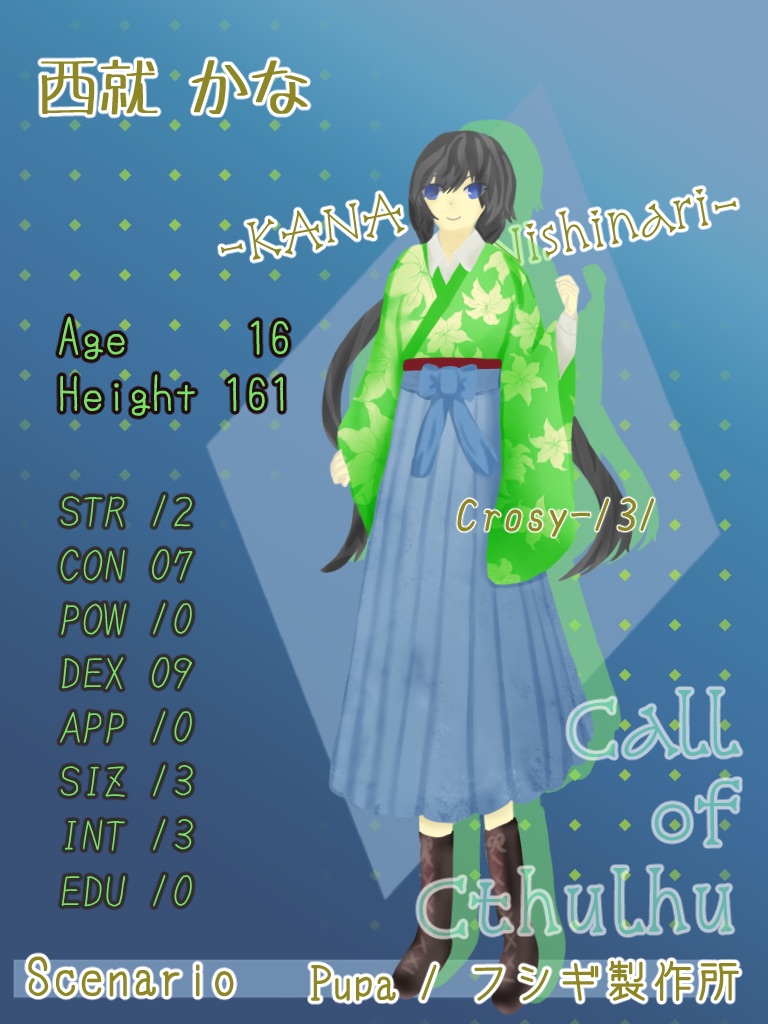 yuuriRP☆quiet followArtSummary202212月ディスプレイとログまとめ #しあログ shiaLog #5108探 ##5108探 show all(+8 images) Tap to full screen (size:768x1024).Repost is prohibited Let's send reactions! freqpopularsnackothersPayment processing Replies from the creator Follow creator you care about!☆quiet follow yuuriRPDONE▼Crosy-226/西就日和◇コーネリアスの棺HO1:ハムレット「んー、そう見える? じゃ、それで~」表:奉仕 裏:理性 ルーツ:勝利illust:Lira yuuriRPDONE▼Crosy-218/Loyalclair=d・Aquarius(ロワイヤルクレール)◇12星座館殺人事件HO 水瓶座♒ 4 yuuriRPDONE▼Crosy-147/レベッカ・エバンズ◇SSS.S HO2→ロールシャッハシンドローム NPC 2 yuuriRPDONE▼Crosy-159/刻透みつるぎ◇リリリバ HO3→またねって笑って、エウリュディケリリリバ自陣で継続!!!差分とか天上くんと背中合わせになったやつとか。 3 yuuriRPDONE▼Crosy-221/四方平 紡◇あいにとけるHO1 飼育係おめめ大きいややツンデレ男 3 yuuriRPDONE▼Crosy-214/ルル◇カーテンコールに祝福の歯車をHO4:グリス「ぼくはルルって呼ばれてるですよ」にこにこさんなちびっこ。 related works きくちゃんDOODLEサタン様犬好きかと思いきやロクサーンみたいなパターンもあるのでやっぱ人外思考なのかな~ ココノカSPOILER幻覚なので全くネタバレではないけど1072話の発言ネタ べこDOODLEピンク色のバレンタインなヨウグズ🍫 わたさくDOODLE ちゃづDONE描いたやつその1※茨あん、ジュンあん 17 nnnnnnoodderaDONE【腐向け】チャバが酔ってハ崎さんに甘えてる漫画。ハ崎さんがトイレに行くのを我慢していたりする。 4 ちゃづDONE描いたやつその1※茨あん、ジュンあん 17 2watoyoDOODLE【朝のボールペン落書き】【日楠♀】【先天性女体化】日高先輩×男装後輩サキュバス家系楠ちゃん。海編。本当に気にしてるのは。 きくちゃんDOODLEサタン様犬好きかと思いきやロクサーンみたいなパターンもあるのでやっぱ人外思考なのかな~ recommended works yuuriRPDONECrosy-60 にょたテトラ落書き yuuriRPMEMOトヤ探プライドマトリクス光邦はもう少し下かもしれない yuuriRPDONE雨夜の一等星/HO1:数扠 政(Crosy-155)音楽一家数扠兄妹の暫定長女。足は弟。テナーサックスで主旋律を担当する。アドリブ好き。色々な楽団の代役で呼び出されては演奏をしている。 yuuriRPDONECrosy-165/コーディ▼ポラリス落つHO2:カムパネルラ一人称私のゆるふわ系お兄さん yuuriRPDONECrosy-166/満仁谷久▼神はすべてきみに任せたのである。HO2/ツクモノ<やっほ~!私はこの村の巫覡!!今日も元気に生まれ育った波薙村のみんなのためにがんばるぞい!>「わーは、まにあっくって呼んでくださって構いませんよお」 yuuriRPDONECrosy-161/常陸あこ赤髪ハーフの墨象画家164cm/26才▼月に毒杯「俺はこの色彩で世界を描きたいって思った」「うぜえ、くそ親父め」「手に乗せるしかない。伝えるためには」 yuuriRPDONE処月撫子/Crosy-168▼それは誰かの幸福論。HO3 優等生やれやれ系主人公っぽいメントスコーラは外でやれ、服狙うな!とはいうけど一緒にやる。立ち絵の構図はフリーのものお借りしてます。二枚目は差分なので自陣まだ× 2 yuuriRPDONECrosy-50/永遠恵水泳持ちの役者役をガワだと思って割りきってるタイプ。 2 yuuriRPDONE今日という誕生日を迎えた二人に!おめでとう!!出会ってくれて、たくさんの物語を見せてくれて。幸せになってね。構図はフリーのものをお借りしてます。 2