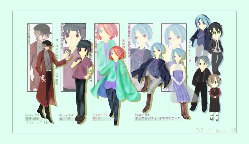 yuuriRP☆quiet followDONE2023.1月まとめ #しあログ shiaLog #5108探 ##5108探 show all(+7 images) Tap to full screen (size:3100x1800).Repost is prohibited Let's send reactions! freqpopularsnackothersPayment processing Replies from the creator Follow creator you care about!☆quiet follow yuuriRPDONE▼Crosy-225/刻透倖仙◇第三の毒の何処職業誤魔化して合コンに出るプロファイラーillust:浅乃めい yuuriRPDONE▼Crosy-226/西就日和◇コーネリアスの棺HO1:ハムレット「んー、そう見える? じゃ、それで~」表:奉仕 裏:理性 ルーツ:勝利illust:Lira yuuriRPDONE▼Crosy-218/Loyalclair=d・Aquarius(ロワイヤルクレール)◇12星座館殺人事件HO 水瓶座♒ 4 yuuriRPDONE▼Crosy-147/レベッカ・エバンズ◇SSS.S HO2→ロールシャッハシンドローム NPC 2 yuuriRPDONE▼Crosy-159/刻透みつるぎ◇リリリバ HO3→またねって笑って、エウリュディケリリリバ自陣で継続!!!差分とか天上くんと背中合わせになったやつとか。 3 yuuriRPDONE▼Crosy-221/四方平 紡◇あいにとけるHO1 飼育係おめめ大きいややツンデレ男 3 related works yuuriRPDONE粕雅 李海/かすが いずみ(Crosy-157)22/167cm カラーコード:056164▼灰になってよかった<生汲 幽/いすみ かすか>という女優を演じてる男。脱がない女優、というレッテルを貼られている。母親のストーカーに両親を探す餌にされてる俳優。 yuuriRPDONE刻透一族のキャラシ 3 yuuriRPDONE▼Crosy-196/数扠累音楽一家の裏方好き。◇ディープブルーにキラめいて HOマネージャー「あなたが輝いてくれるためなら、なんだってしてあげたいんです」「お願いですから、隠し事なんてしないでください」 yuuriRPDOODLEケイコログ/ゴダルカバレは無し 2 yuuriRPDOODLEエイプリルフール! 4 yuuriRPDONECrosy-183/丹鐘千隼やれやれ系しっかり者少女▼探偵翅シリーズ 24.3/18-二話 24.8/16,20 2 yuuriRPDONECrosy-159/刻透 みつるぎ▼リバースリバースリバースHO3 猟犬 23.5/1-二枚目は元バディほよんちゃんとお手手繋いで! 2 yuuriRPDONE▼Crosy-140/皆瀬采◼︎旅館の捕食者 HO2作家→◇Mrs.アリスの醜聞 yuuriRPDONE二枚目は差分等!秘匿バレはないCrosy-151 / TEMPRUBATI・Chiaroscuro(テンプルバティ・キアロスクーロ)色気より食い気なお嬢さん気になったお店の裏路地に入るタイプの方向音痴▼ Aconite : re 23.1/18,19,22HO1:あなたはファミリーの時期ドンだ。人柄がよく、人望がある。 4