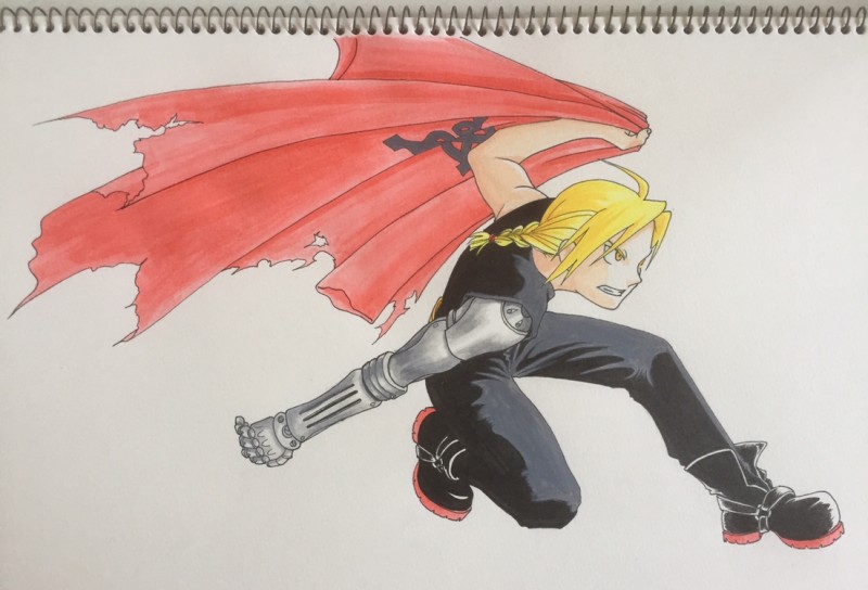 もう1枚のエドと同じくらいに描いたもの。ホワイトとか散らしてみたい気もしたけど、あえてのシンプルで(←単に怖気付いただけ) 漫画のハガレン大好きだったなー。