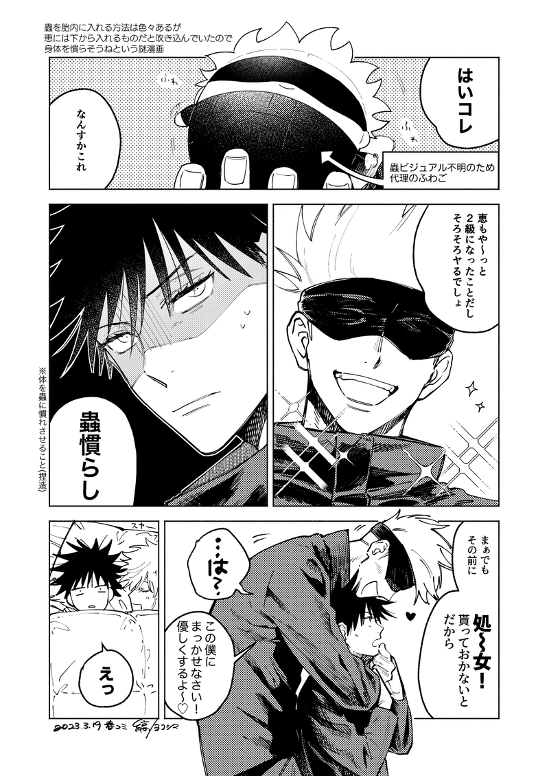 縞(しま)☆quiet followDONE20230319春コミ 手直し済五伏プチに何としても新しいものを出したくて作った蟲ネタ(?)にかこつけた漫画ペーパーでした手に取ってくださった方ありがとうございました! Tap to full screen (size:1075x1518).Repost is prohibited Let's send reactions! freqpopularsnackothersPayment processing Replies from the creator Follow creator you care about!☆quiet follow 縞(しま)DONE20230319春コミ 手直し済五伏プチに何としても新しいものを出したくて作った蟲ネタ(?)にかこつけた漫画ペーパーでした手に取ってくださった方ありがとうございました! 縞(しま)DOODLEいただいたアイスがおいしかったというフリート0ごじょねんどろ未着なので手描き‥ 縞(しま)MAIKING「だって傑が言ったんじゃん」というタイトルで出したい夏五本のラフのラフ(ツイッターに表紙のタイムラプス載せてるやつ)ですそこそこ長生きした五の話五に生涯独身貫いててほしい人には不向きなまんが 3 縞(しま)MAIKINGR18/五ショタ伏/倫欠既刊「毒を食む」の2人のエロまんが恵が小学生ということだけ頭に入れてもらえれば本読まなくて大丈夫です2022524ごめふし展示 縞(しま)MAIKINGげごのごご 本文に飽きて表紙手直し 縞(しま)PROGRESS夏五前提五五のラフ 五は股下構図が映えるので同じようなの描いてしまう‥