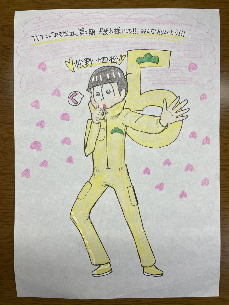 おそ松さん第2期の最終回までのカウントダウンとしてpixivSketchに、そして最終回の後に全てまとめてpixivに投稿したイラスト。つなぎ姿がお気に入りでしたが、あまり見ることが出来なくて残念だったな〜と思いました😅