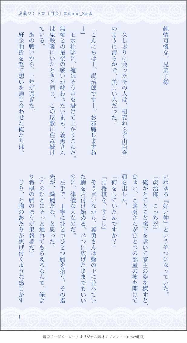 hamo_2dsi☆quiet followPAST炭義ワンドロライ「再会」接吻で子供が出来ると思ってる兄弟子の話 ##炭義 show all(+4 images) Tap to full screen (size:618x1132).Repost is prohibited Let's send reactions! freqpopularsnackothersPayment processing Replies from the creator Follow creator you care about!☆quiet follow hamo_2dsiPAST資産家の息子義勇×翼人炭治郎の純愛物語。歌歩さんのゲスト本に寄稿した小説のweb再録です。執着愛がテーマでした。だいぶ特殊な人外パロなので大丈夫な人だけ。18歳以上ですか? y/n 28054 hamo_2dsiDONE淫魔の義勇さんがカレーを作ってくれたり炭治郎くんの童貞を頂いたりする話。「淫魔とトルタ・パラディーゾ」の続き。注意⚠・受け優位/攻め劣位・攻めがよく喘ぐというか泣く・攻めに異物(?)挿入(しっぽ姦)・パスはおしりから挿入れて下さいちんちんの挿入は炭→義のみ。18↑? 30609 hamo_2dsiPAST炭義「告解」の後日談(204話後)。誤解・すれ違い・野外おせっせ。オフ本の書き下ろしでしたが再版の予定が無いのでweb再録します。本編はpixivにあります。本を手に取って頂いてありがとうございました。 13655 hamo_2dsiPAST義炭+錆兎のギャグ。何でも許せる人向け。かなり昔に人様のマロの送りつけた「錆兎がいっぱいコレクション」 1163 hamo_2dsiDONE春待ち攻受父父企画に参加させて頂いた「情け雨」のすけべ部分です。甘さ一切無しのビターなすけべ。蛇足かなと思いながら書いてしまったので…。 1832 hamo_2dsiPAST炭義。寄稿した原稿のweb再録。犬も食わないような話を書きたいと思って書きました。年下ワンコ攻め炭治郎くんがキャンキャンしてる。原作軸です。かすさんゲストに呼んで頂いてありがとうございました!! 18202 recommended works 星を見つめる184DOODLE切磋琢磨し合う2人が好き😭 2 POI10430365MOURNING自カプのエロ漫画 途中までなんですが出来次第また続きを載せます 28 Mx_Merfolk_cosTRAINING【コス】兄上メイク練習 シーツ1枚目がすっぴんイメージで2、3はちょっとピンク入れてる横着した(眉毛ちゃんと潰さなかった)のであんまうまくいってないかもあとやっぱカラコンもっと大っきいのに変えたほうがいい 3 vs_ab97MENUismo WEBオンリー展示ページ全年齢漫画(1ページで限界でした)(🔑開催日2日目の日付、4桁)*そのあと🩵は盗撮の件がバレて(最初からバレてる)脅され💙の言いなりになる。 S.L. PyneDONE「你殺了我的妻子,」少爺冷冷宣佈,「我雖然不能殺了你,卻能讓你感受一下生不如死的滋味。」 5 404DOODLEgod magnus x fire convey🔞18↑?y/n 6 めんたDOODLE※夢絵風邪引いた夢主(俺)の看病してくれるしのぶ(彼女???) UwaehhhDONEEdgar Valden self-harm yes/no? POI11249118DOODLEhttps://www.karendoll.com/最近も色々新しいラブドールを発売しました。でも新しいラブドールでも、決して人気ラブドールより優れているわけではないので、今回は最近の人気ラブドールを紹介していきたいと思います。最近ラブドールに趣味を持っている方はぜひ最後まで見てください。気になる子が見つけるかもしれません。