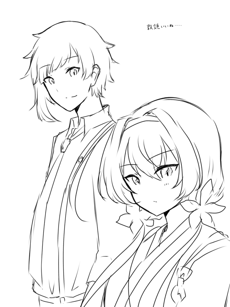 ふとこの二人を思い出したので落書き。アニメ一期だけ見てました(ニ期がいつの間にか始まって終わってたんです…)ぴくしぶのぞいたらなかなか自分の気になる展開になってるみたいで見なかったことを後悔してます…再放送求む