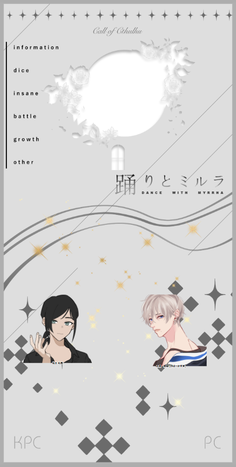 秋冬🍁ちゅーずでー☆quiet followINFOクトゥルフ神話TRPG「踊りとミルラ」作◇nogu 様PC/KP◆佐土 礼音/秋冬PC/PL◇志波 和城/りびこさんエンド1にて終幕。「4年ですね、わかりました。それまで、生きていてくださいね」 ##卓報告 Tap to full screen (size:476x939).Repost is prohibited 秋冬🍁ちゅーずでーDOODLEめちゃくちゃ笑ったんだけど 62 秋冬🍁ちゅーずでーINFOクトゥルフ神話TRPG「キョウトあかやし歌番地」作◇はくまい 様KP◆秋冬PC/PL◇初春 詩音/なないさんEND:A、生還にて終幕。初春くん全然ぶれないの、ダイス出目にも出てて流石だったたくさんお喋りしてくれてありがとう! 秋冬🍁ちゅーずでーINFOクトゥルフ神話TRPG「TACCA」作◇しおみづ 様KP◆秋冬HO館主/PL◇ディル/えいりーさんHO従者/PL◇トーリ・ファムルス/てらまえ。さんEND6にて終幕。こちらも最高主従でした……ドラマティック出目すぎる!!解釈一致でした 秋冬🍁ちゅーずでーINFOクトゥルフ神話TRPG「AND/HAND」作◇kem 様PC/KP◆真白/麦茶さんPC/PL◇西院 九条/秋冬END:Aにて終幕。いわひら継続!「言って悪いことなんてないんですよ~」 秋冬🍁ちゅーずでーDOODLE🦌 246 秋冬🍁ちゅーずでーDOODLE花ヶ丘 未通過×桜に幕、 67 recommended works はちのじDOODLE舞台異説狂人日記【拒絶】配信視聴感想まとめ十三(やみえんさん)の好きだったところ詰め 3 みちなき みちをSPOILER #舞台異説狂人日記ヨビゴエ vol.1舞台『異説・狂人日記』行ってきました!!とっても素晴らしかったのでレポ描きました。【拒絶】の方は、配信チケット今日までなのでまだ見ていない方は是非!!!!!! 4 jemauceanSPOILER #舞台異説狂人日記 never__enough9PAST睡の姦 2 SLeinkaDOODLE藤真X花道、この間描いたものを通訳しました。全8ページお読みくださり、ありがとうございます 8 Kuya_San59SPOILER #都市伝説課HO1に10質 692 gyunyu_trpgSPOILER舞台【異説・狂人日記】(受容)のネタバレ画像?例のセンセの着物のはだけ方について。これはめちゃくちゃ笑った………ww#舞台異説狂人日記 muhi/mochidaDOODLEくそ楽しかった絵チャ withおから 4 oekakikaki_girlDOODLEなんかエンマちゃんが手足固定されて身ぐるみ剥がされた感じのあれです…