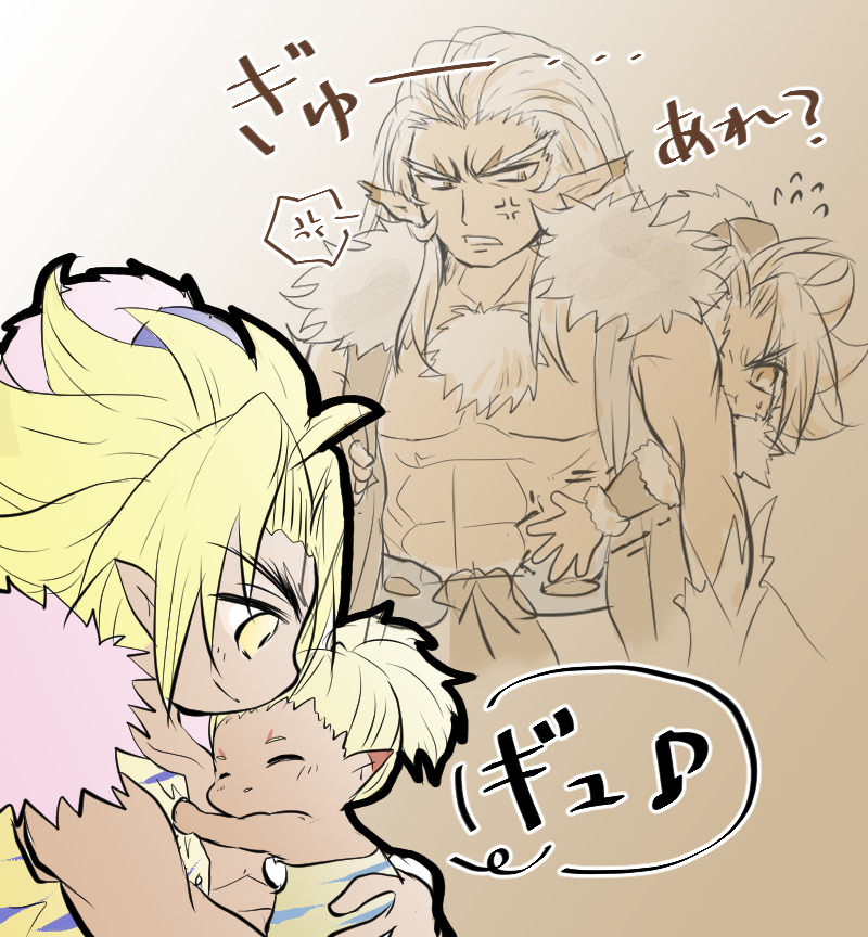 ルガケヴィでほのぼの(?)ハグ、転生前はルガの胴回りケビくん届かないあの身長差なら、ルガ坊ならハグばっちり☺️たぶんekmn軸です