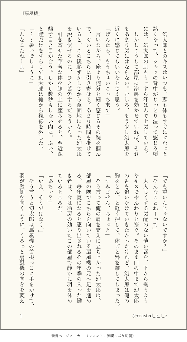 『先輩/後輩』 王さま、と呼ばれることに慣れたのはいつ頃だっただろう。司は、なんとなくそんなことを考えながらテレビ局を後にする。腕時計で時刻を確認すると、もうそろそろ二十四時を回ろうとしていた。今日の仕事は先程の番組で最後である。この後は恋人の待つ自宅に戻るだけ、という事実を思えば、若干疲れを訴えていた足元も軽くなるというものだ。二十歳を超えてしばらく経ったとはいえ、司もアイドルの皮を脱いでしまえばただの男。恋人との逢瀬はいつだって嬉しいのだ。