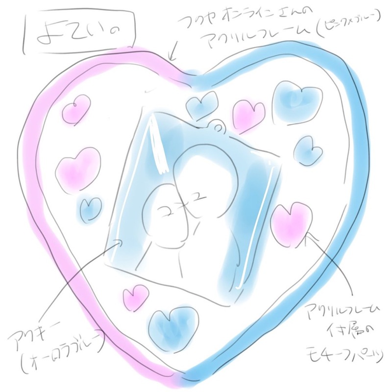 フクヤオンラインさんのハートアクリルフレームに合わせて、ここに入るサイズの小さいコンユのアクリルがほしいなと思い作った思い出。