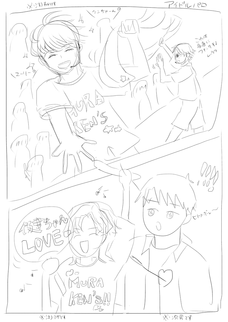 渋谷と村田でムラケンズというアイドルユニットを組んでいて、すでにヨザは村田担、ヨザに誘われて嫌々ムラケンズのコンサートに連れてこられたコンラッドだったが、有利にハートを撃ち抜かれてしまい、無事有利担になるのだった…。
