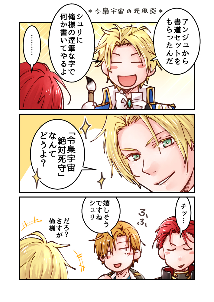 勝手にこんな関係だと思ってます。令梟も光と炎が仲良しですけど、シュリはユエに逆らえそうですよね?オスカーはジュリアス様に逆らえないだろう…。風は…ヴァージルも日の執務室でクルクルポンっをできるだけの運動神経を持ち合わせてると思います。しちゃくれないだろうけど。