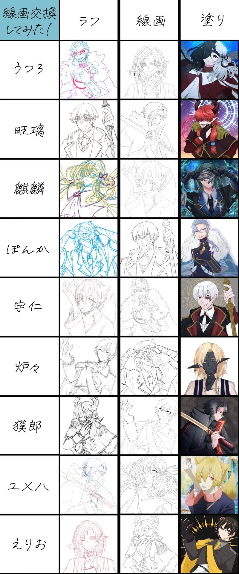 夢ノ葉☆quiet followDOODLE主催うつろさん( @utsu_rocks )のローテーションお絵描きhttps://x.com/yumeha_4/status/1668188612872265728?s=20 show all(+4 images) Tap to full screen (size:855x2048).Repost is prohibited Let's send reactions! freqpopularsnackothersPayment processing Replies from the creator Follow creator you care about!☆quiet follow 夢ノ葉DOODLE【身内創作企画】星十字のカバラリア@Seikava_TL様に参加させていただいてるうちの子とよその子をリヨ絵風に描いたものを集めただけ。 4 夢ノ葉DOODLE世界観共有型一次創作企画「さよなら、また来世!」@Saraise_TL様に参加させていただいているうちの子ミュクスティア・アルクスをまとめたものを置いてます。よそのお方との絡みも置いてたりします。25/06/25 画像10枚追加しました。 17 夢ノ葉DOODLEクリスマス絵 3 夢ノ葉PROGRESSまんが途中…卯月の誕生日4桁 10 夢ノ葉DOODLE【身内創作企画】星十字のカバラリア@Seikava_TL様に参加させていただいてるヴィエトルの一年後の姿絵を集めてます。R18カプ絵もあるのでご注意ください。カギは一年後のヴィエトルの身長です。(数字だけでおk 10 夢ノ葉DONE一次創作企画「霧の眠る町」@Zzz_Mist_TL 様に参加させていただいているうちの子とそのフォロワーのお子さんたちを描かせていただいたもの。↓のはその時の動画です。https://x.com/yumeha_4/status/1655331562567892992?s=20 8 recommended works rosa111sha(狼紗)PASTテスト。前回の月見イベで描いたやつ#刀剣乱舞 みざさぎ@特訓モードMAIKING飽きて線画大荒れになってきた(色ぬり早くやりたい かえでDONE sanviDOODLE猫耳っていうかケモミミらくがき 柵原ときDOODLE国広くんと長義くん YuinoDOODLEちょうぎのひ おーへーDOODLEねぇねぇ!今日仕事頑張ったんだよ!凄まじく褒めて!!#山姥切長義 #刀剣乱舞 ##刀剣乱舞 𝙨𝙖𝙣𝙖DOODLE塗りました🐶🎨 雲津巾TRAINING歌仙さん人見知りって聞くけど、どうにも自分の中で定着しない。文系ゴッリって事は納得した。